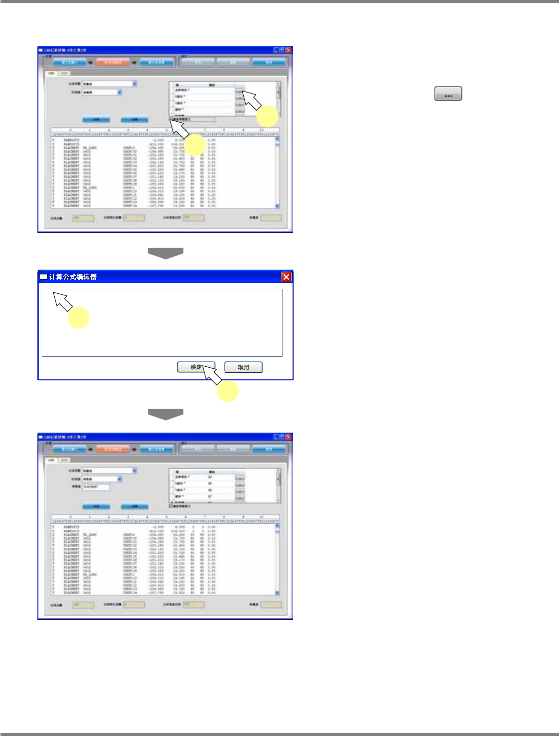 NPM-DGS 程序手册 5.2 CAD 宏的定义 Page 5-36 EJS9AC-MB-05P-09 3 进行式的编辑。 4 点击 [ 确定 ] 。 式将被设定。 Project050201S-2 8C00 Project050201S-2 7C00 3 4