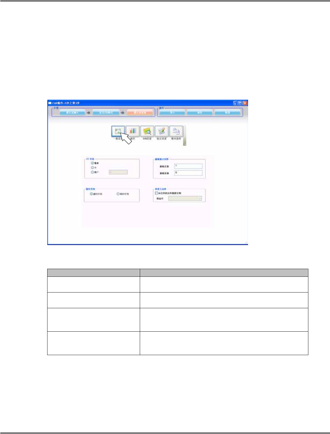 NPM-DGS 程序手册 5.2 CAD 宏的定义 Page 5-58 EJS9AC-MB-05P-09 3. 宏定义的详细设定 用 ‘ 建立宏设置 ’ 步骤,定义获取 CAD 时的详细设定。 ‘ 建立宏设置 ’ 步骤有以下 5 个标签。 • 全面 • 操作 • BOM • 检查内容 • 角度符号 全面标签 定义在获取 CAD 时的基本设定。 设定项目 项目 说明 ‘XY 单位 ’ 选择在 CAD 文件上使用的单位。 使用用户选…