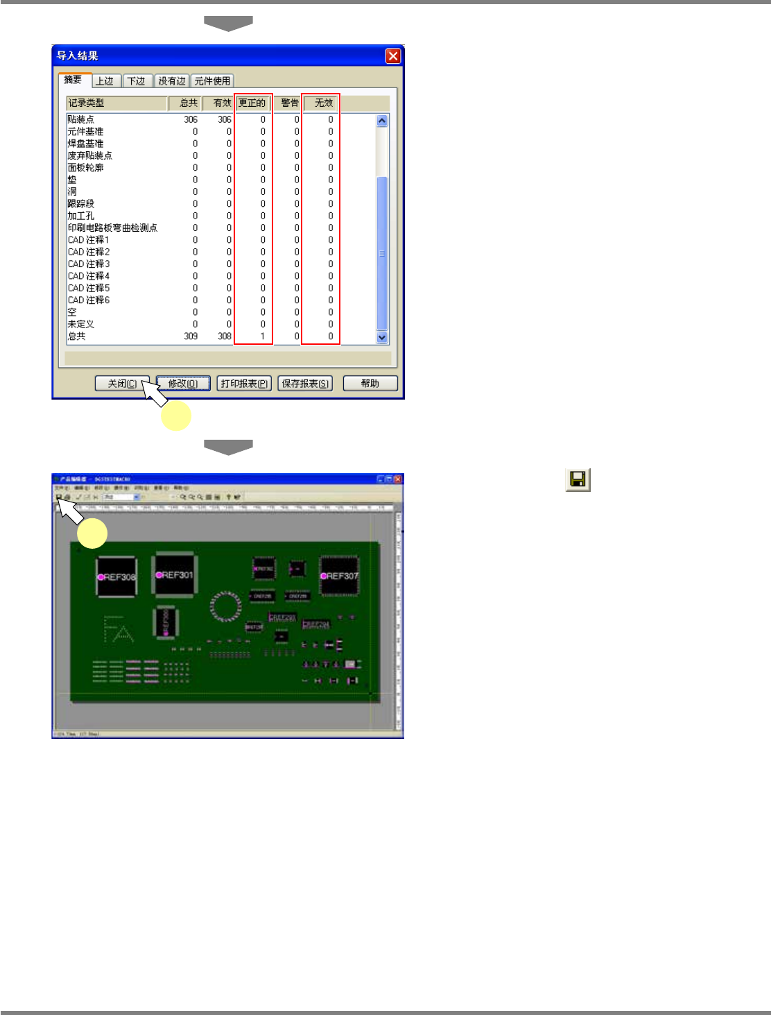 NPM-DGS 程序手册 5.3 CAD/BOM 文件的导入 Page 5-84 EJS9AC-MB-05P-09 3 确认,修正获取错误的原因。 4 点击 [ 应用 ] ,确认错误是否被修正。 如果错误被修正, 将变成 。 存在其它的错误原因时, 点击 [ 下一个错误 ] ,进 行错误修正。 要求 在此进行的修正是暂时的修正。 为使变更有效, 必须在 [CAD 系统编辑器 ] 的 [ 文件格式 ] 窗口,对变更的 CAD 系统…