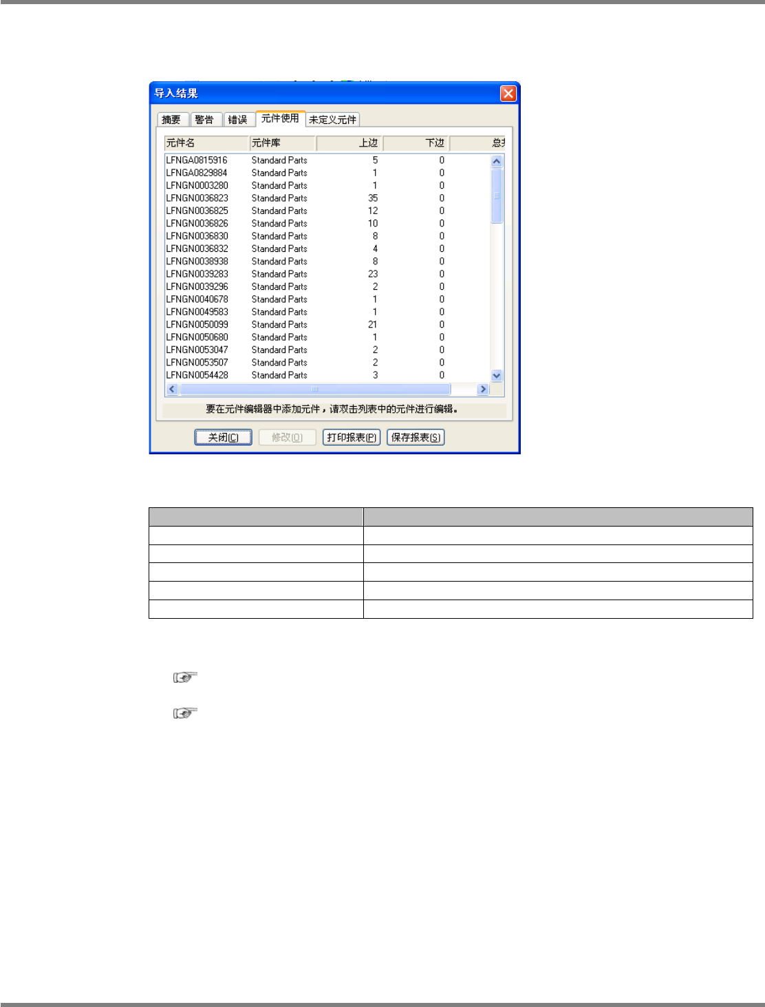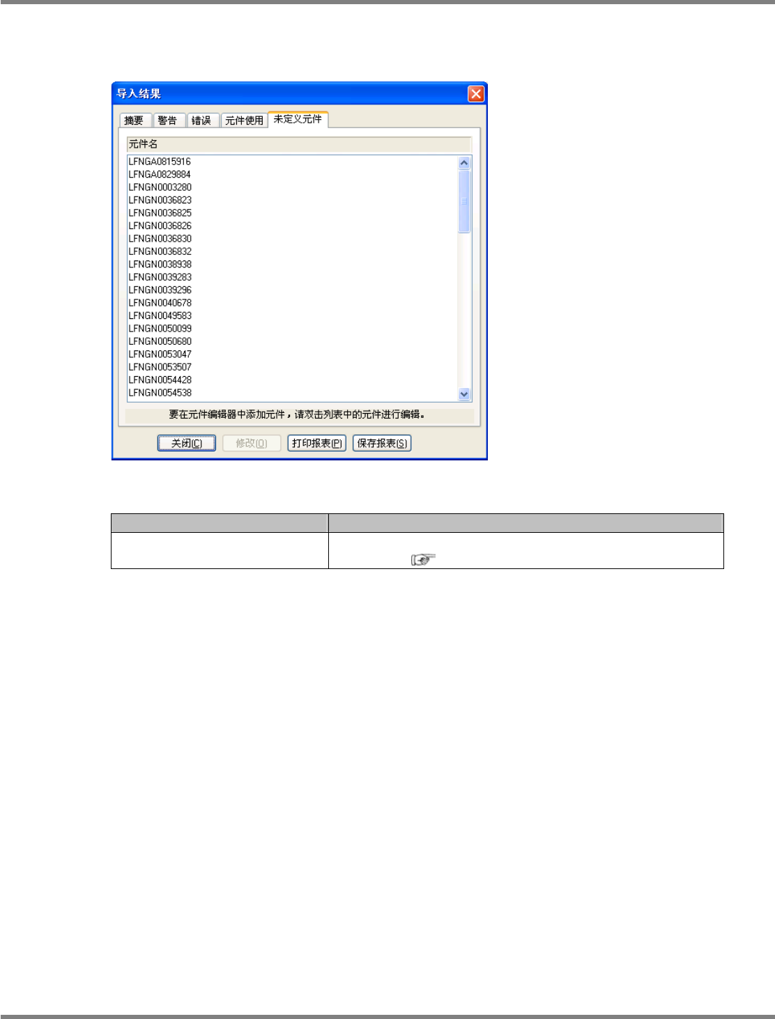 NPM-DGS 程序手册 5.3 CAD/BOM 文件的导入 Page 5-98 EJS9AC-MB-05P-09 ⑤ 未定义元件标签 从以 GenCAD14 宏所导入的元件中,显示 DGS 侧的未定义元件。 显示项目 项目 说明 ‘ 元件名 ’ 显示没有登录在导入目的地 DGS 中的元件。双击,即能够新建 编制元件。 ( ‘6.5 添加新的元件 ’ ) Project050300S-2 3C01
