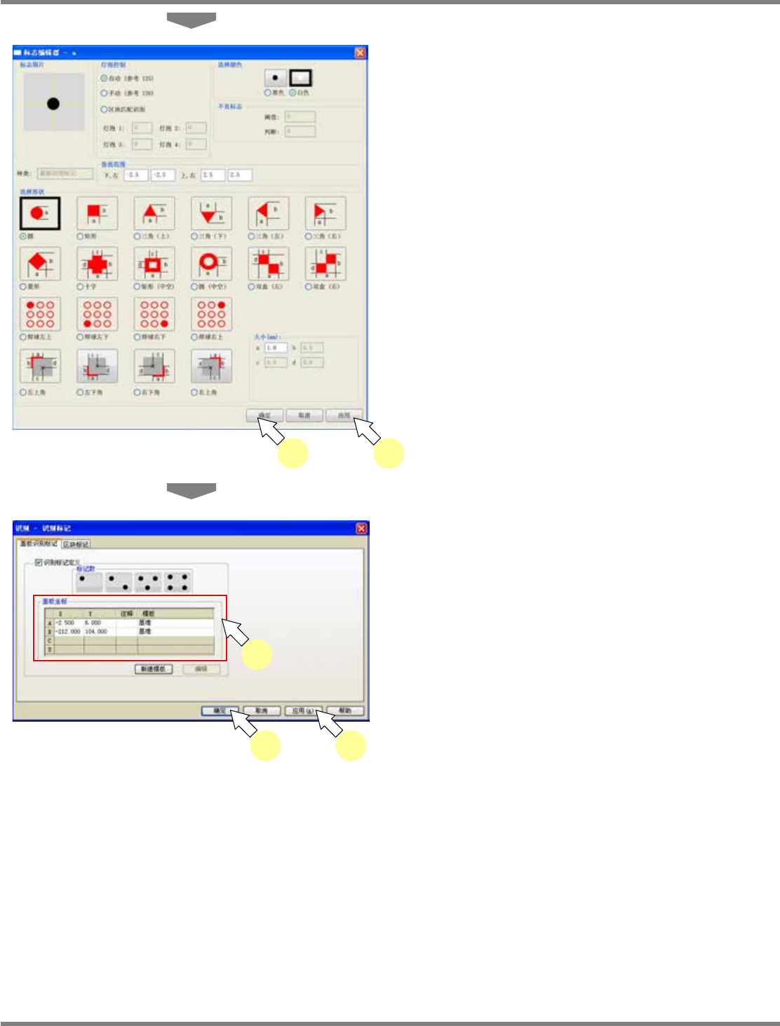 NPM-DGS 程序手册 5.8 PCB 编辑 EJS9AC-MB-05P-09 Page 5-161 ① 添加新建的基板识别标记 1 选择菜单栏的 [ 识别 ] [ 识别标记 ] 。 显示出 < 识别 – 识别标记 > 画面。 2 选择 [ 基板识别标记 ] 标签。 3 ‘ 识别标记定义 ’ 栏中打勾。 4 选择标记数。 5 在重新登录标记时,点击 [ 新建模板 ] 。 显示出 < 新建基准标志 >…