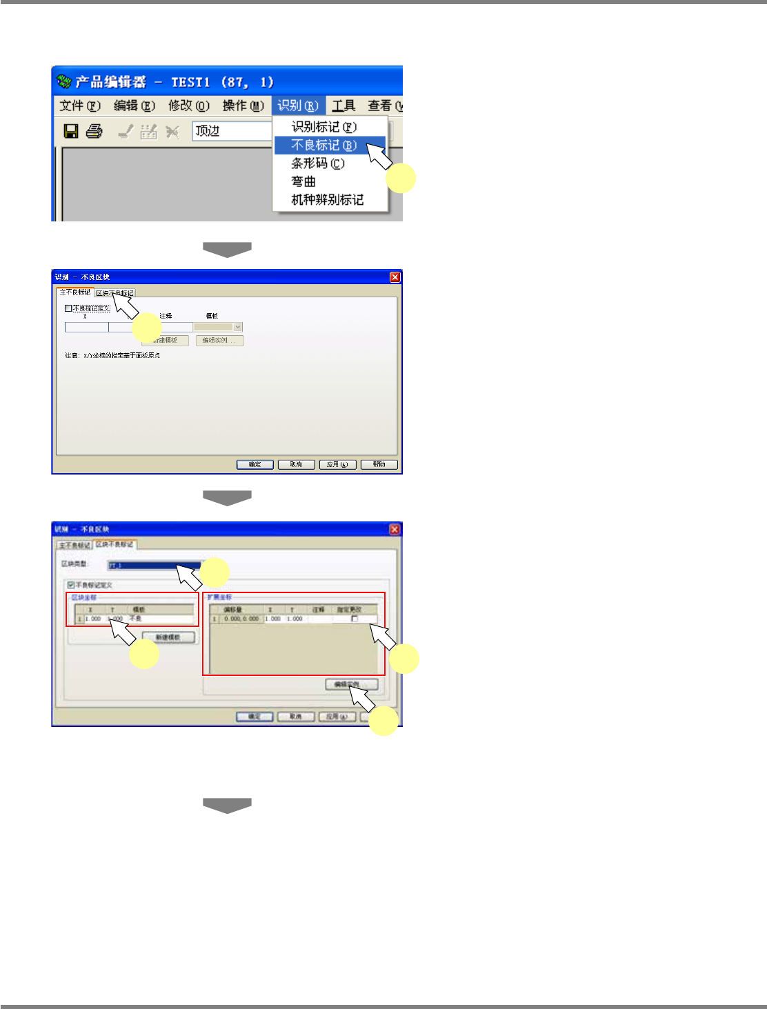 NPM-DGS 程序手册 5.8 PCB 编辑 Page 5-188 EJS9AC-MB-05P-09 7 对要编辑的地方进行必要的设定, 点击 [ 应用 ] 。 当存在配置在相同基板面上,且使用 相同模板 标记的其他图形偏移量时,将显示以 下的确认 对话框。 [ 是 ] : 同时还将变更反映进其他的模板。 [ 否 ] : 只对正在编辑的标记反映变更。 8 点击 [ 确定 ] 。 关闭 < 标志编辑器 > 画面。 9…
