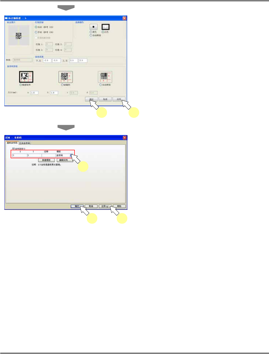 NPM-DGS 程序手册 5.8 PCB 编辑 EJS9AC-MB-05P-09 Page 5-191 ① 添加新建的基板条形码 1 选择菜单栏的 [ 识别 ] [ 条形码 ] 。 显示出 < 识别 – 条形码 > 画面。 2 选择 [ 基板条形码 ] 标签。 3 在 ‘ 条形码定义 ’ 栏中打勾。 4 在重新登录标记时,点击 [ 新建模板 ] 。 显示出 < 新建基准标志 > 画面。 如果使用已…