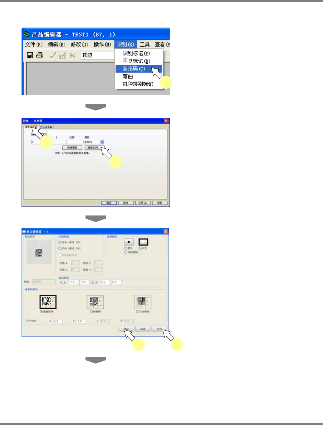 NPM-DGS 程序手册 5.8 PCB 编辑 EJS9AC-MB-05P-09 Page 5-193 ② 基板条形码的编辑 1 选择菜单栏的 [ 识别 ] [ 条形码 ] 。 显示出 < 识别 – 条形码 > 画面。 2 选择 [ 基板条形码 ] 标签。 3 进行标记编辑时,点击 [ 编辑实例 ] 。 显示出 < 标志编辑器 > 画面。 如果不进行标记变更,请跳过步骤 3. ,进行步 骤 6. …