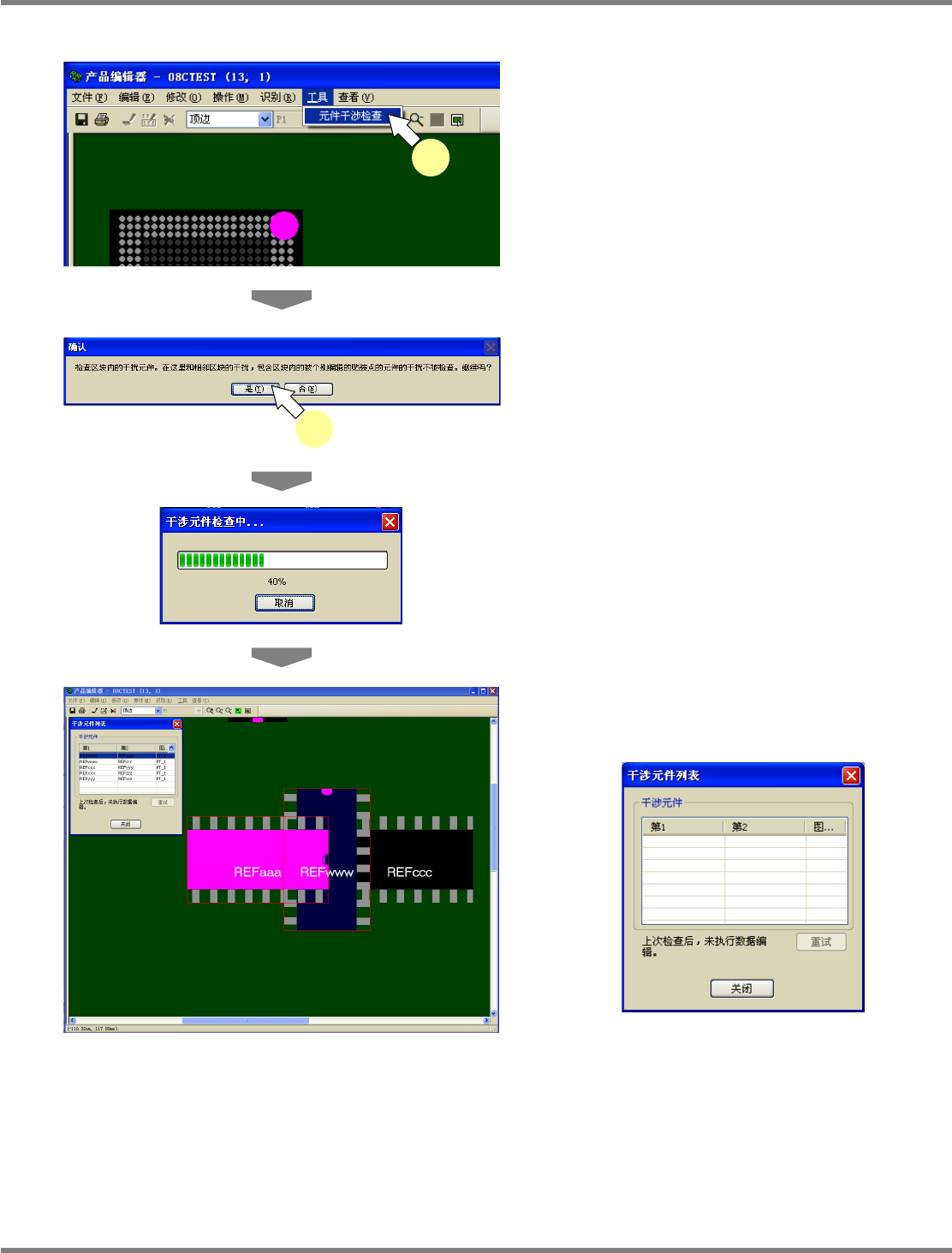 可对基板上的所有实装点确认是否发生元件干涉。