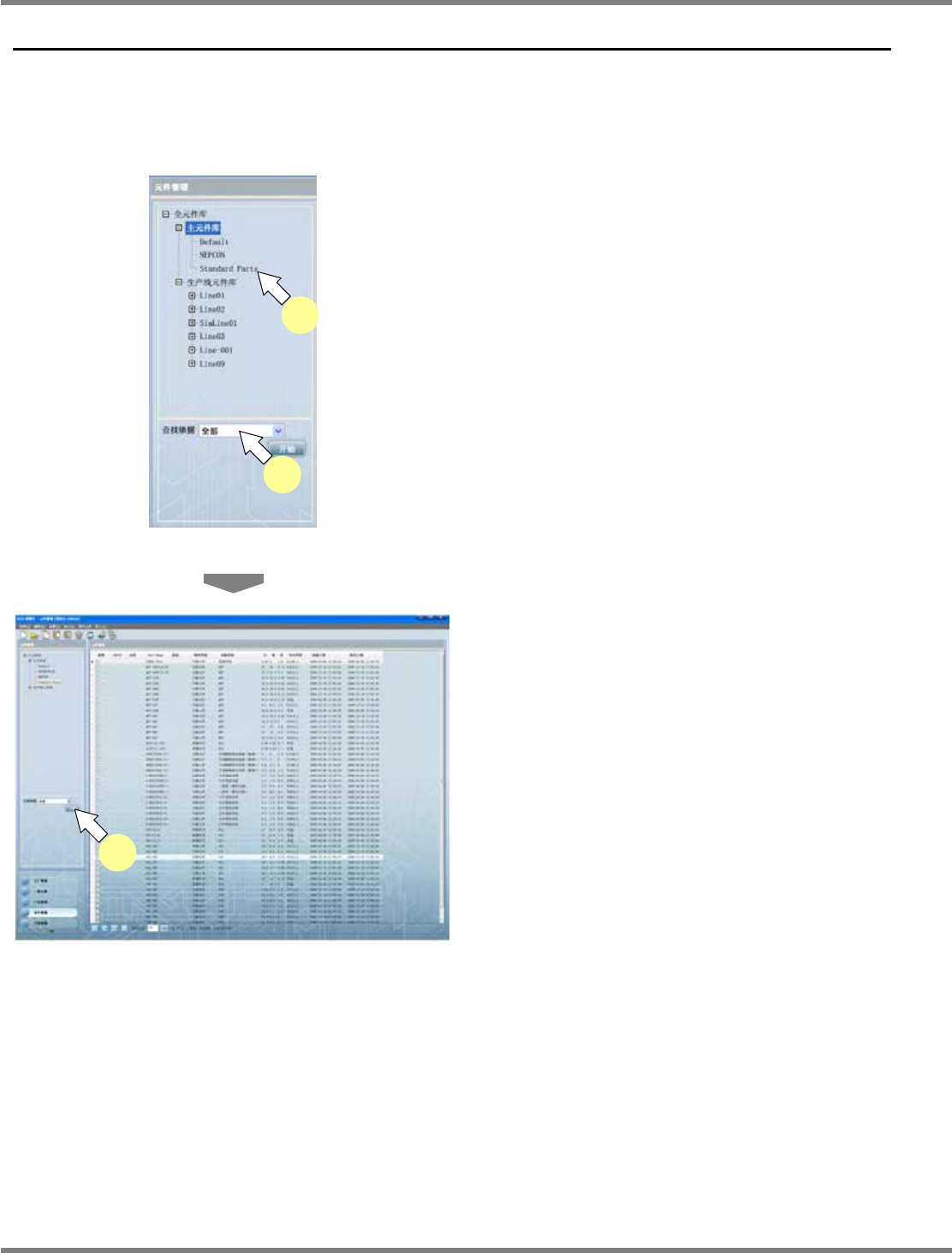 NPM-DGS 程序手册 6.3 元件检索 Page 6-14 EJS9AC-MB-06P-08 6.3 元件检索 检索元件,并且在元件一览表中仅显 示所检索的元件。 6.3.1 元件检索方法 1 选择要检索的元件库。 2 选择检索方法。 3 点击 [ 开始 ] 。 在元件一览表中显示检索出的元件。 Parts060102S-0 1C01 3 Parts060301S-0 1C00 1 2