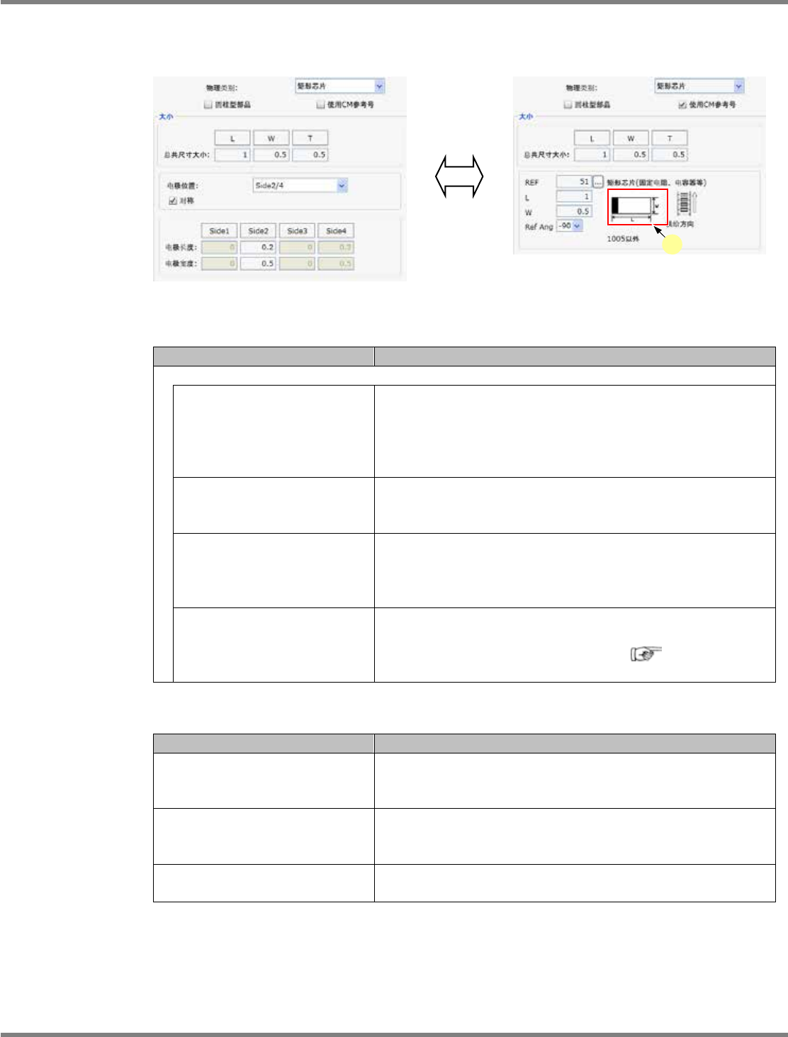 元件形状信息的设定项目如下所示。