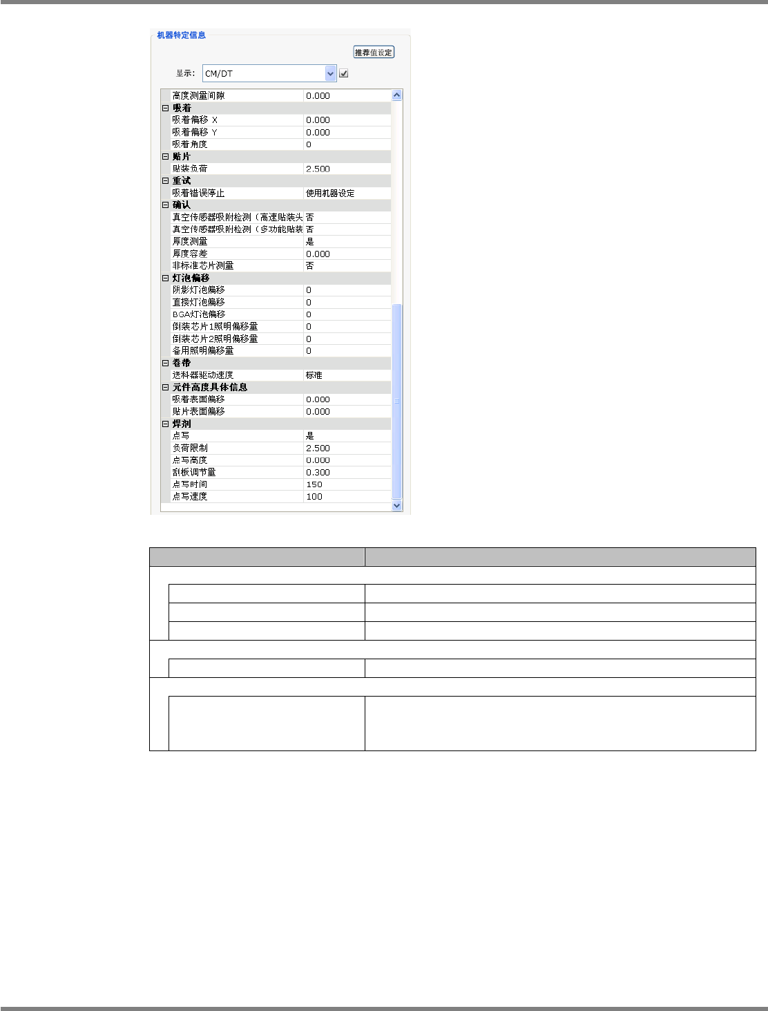 NPM-DGS 程序手册 6.5 添加新的元件 Page 6-70 EJS9AC-MB-06P-08 項目 说明 ‘ 识别 ’ ‘ 识别速度 ’ 识别元件时的速度。有以下 4 种。 • [ 自动 ] • [ 高速 ] • [ 中速 ] • [ 低速 ] 在通常状态下使用 [ 自动 ] 。选择 [ 自动 ] 后,设备基 于元件形状尺寸 下判断,以适当的速度进行动作。也 可不靠设备的自动判断,指 定任意速度。但是,我们不推荐这种 方法。 ‘…