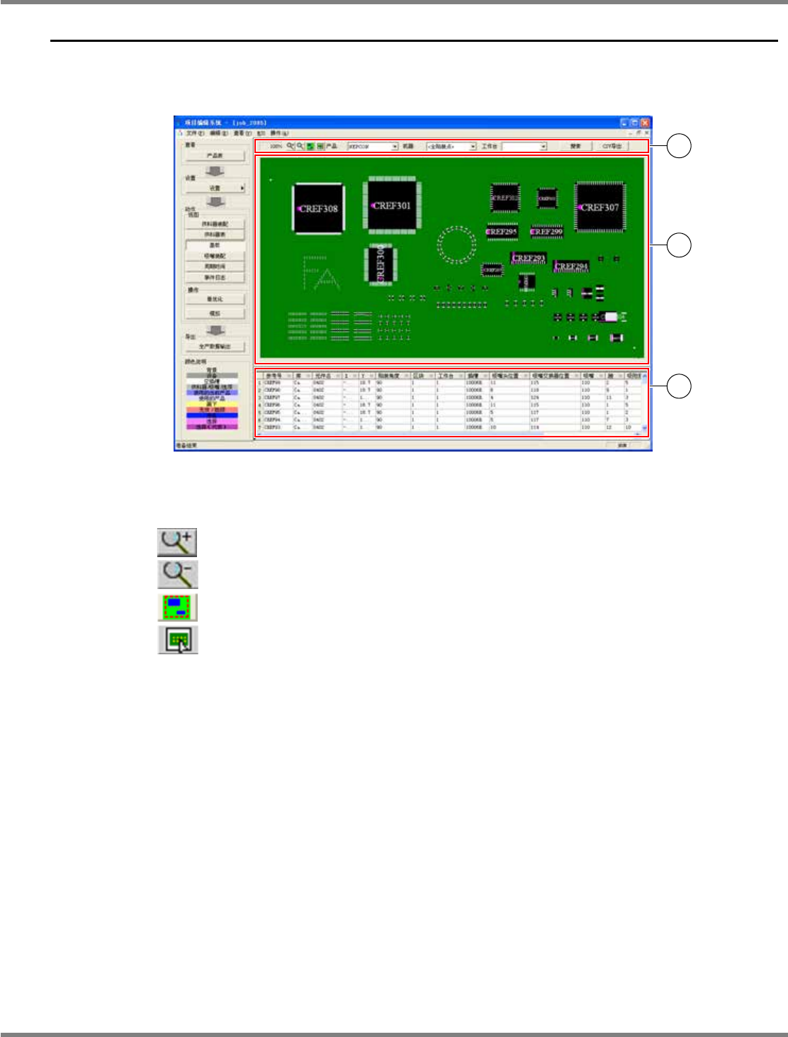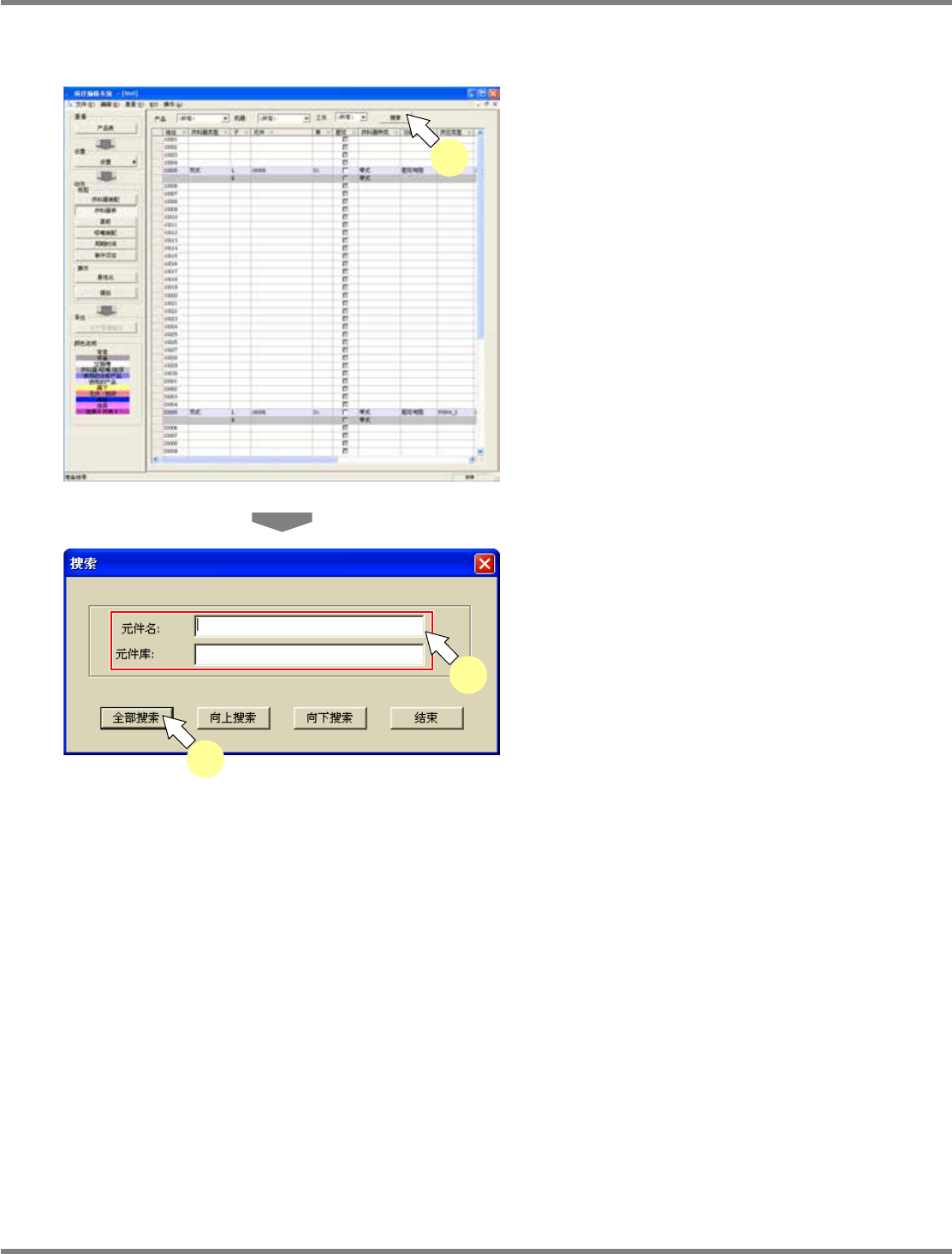 通过基板画面确认基板上的元件装配、在哪一个机器上进行各实装点的实装。请在项目栏的