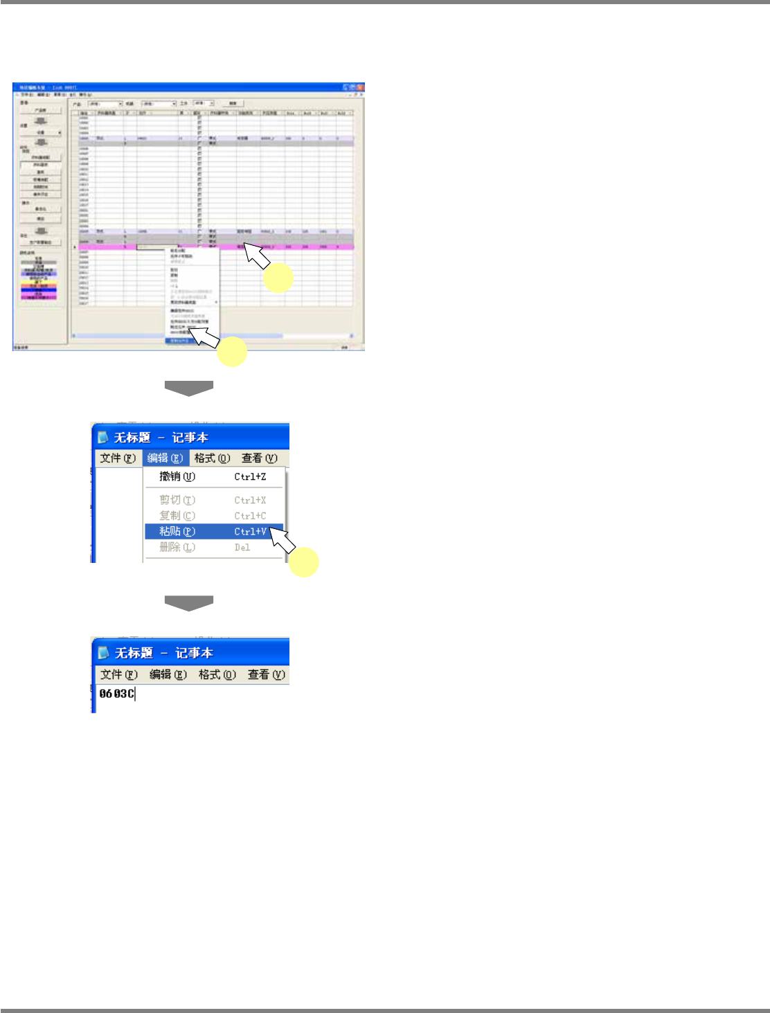 NPM-DGS 程序手册 7.6 供料器表画面 Page 7-114 EJS9AC-MB-07P-09 7.6.8 在供料器带上复制元件名 将元件名称复制到剪贴板上。之后, 能够粘贴到记事本等软件上。 1 选择需要复制的元件名的元件。 2 从右点击菜单中选择 [ 复制部品名 ] 。 所选择的元件名会被复制到剪贴板上 。 3 启动记事本等软件后,选择 [ 粘贴 ] 。 复制在剪贴板上的元件名称即会被粘 贴到记事 本上。 Produ…