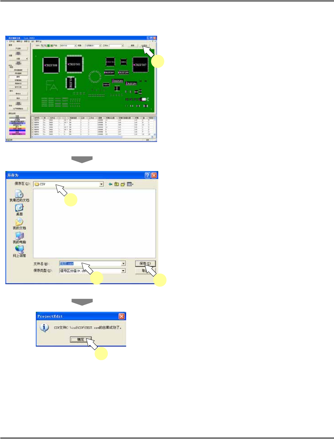 NPM-DGS 程序手册 7.7 基板画面 Page 7-126 EJS9AC-MB-07P-09 7.7.7 贴装点一览的 CSV 导出 能够以 CSV 文件形式输出贴装点的一览。 1 点击 [CSV 导出 ] 。 将显示 < 另存为 > 画面。 2 指定保存 CSV 文件的目录文件夹。 3 输入 CSV 文件名。 4 点击 [ 保存 ] 。 5 点击 [ 确定 ] 。 即完成了 CSV 文件输出。 Product…