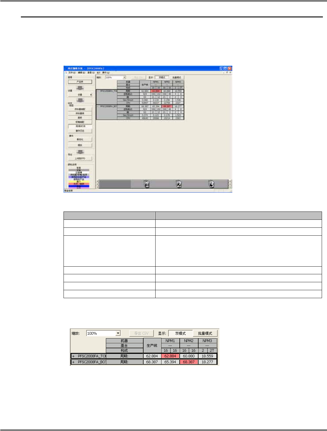 显示周期时间。在瓶颈的情形下,背景颜色转为红色。