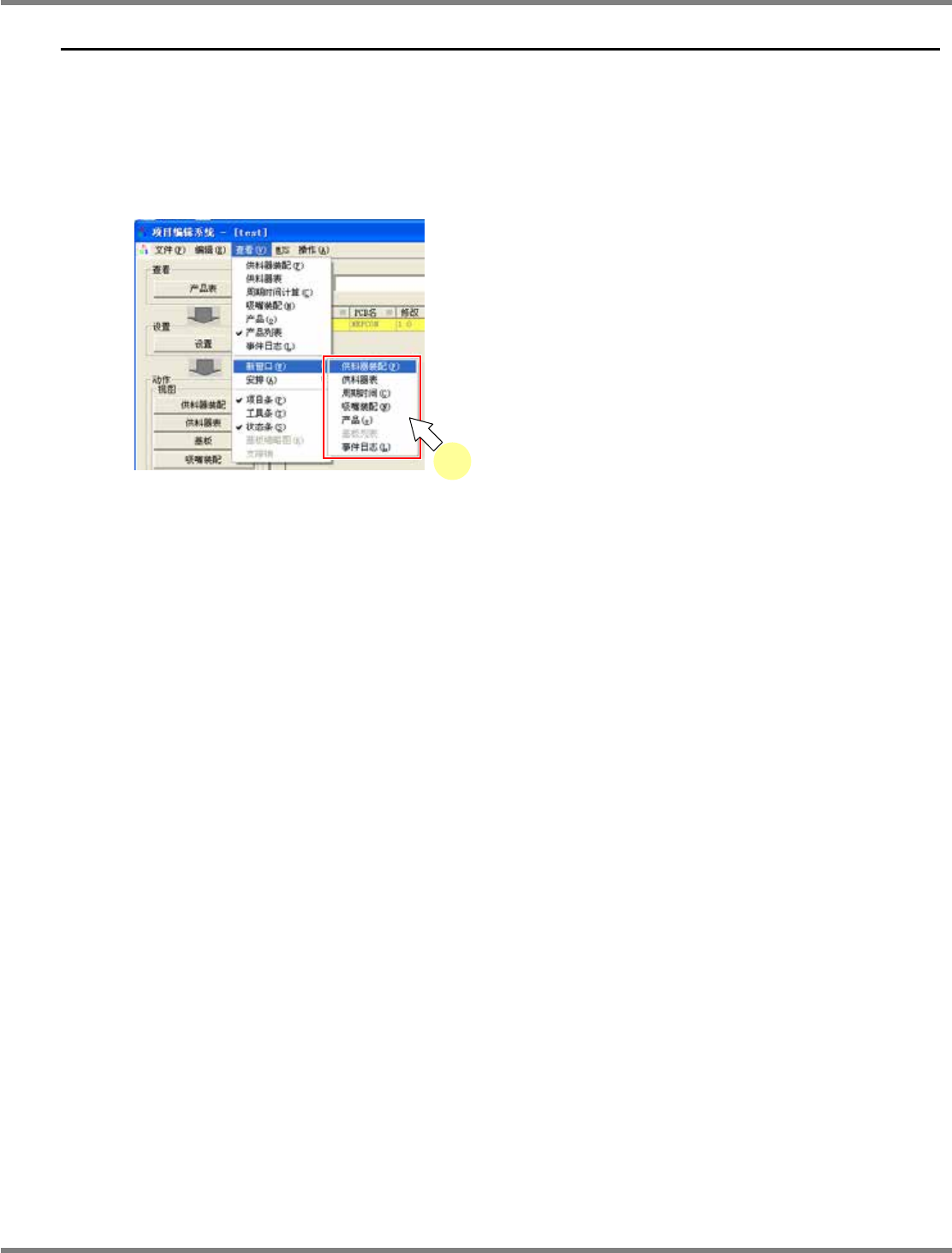 NPM-DGS 程序手册 7.13 数据编制工作的方便的使用方法 EJS9AC-MB-07P-09 Page 7-173 7.13 数据编制工作的方便的使用方法 可在数据编制工作中根据必要打开复 数视图画面,并列显示。使用在 如下所示情况的话,很方便。 同时确认供料器装配画面和吸嘴装配 画面。 打开 2 个供料器装配画面,在分散设 置的机器之间进行元件的移动和 拷贝。 从新添加打开视图画面 1 选择菜单栏的 [ 查看 ] …