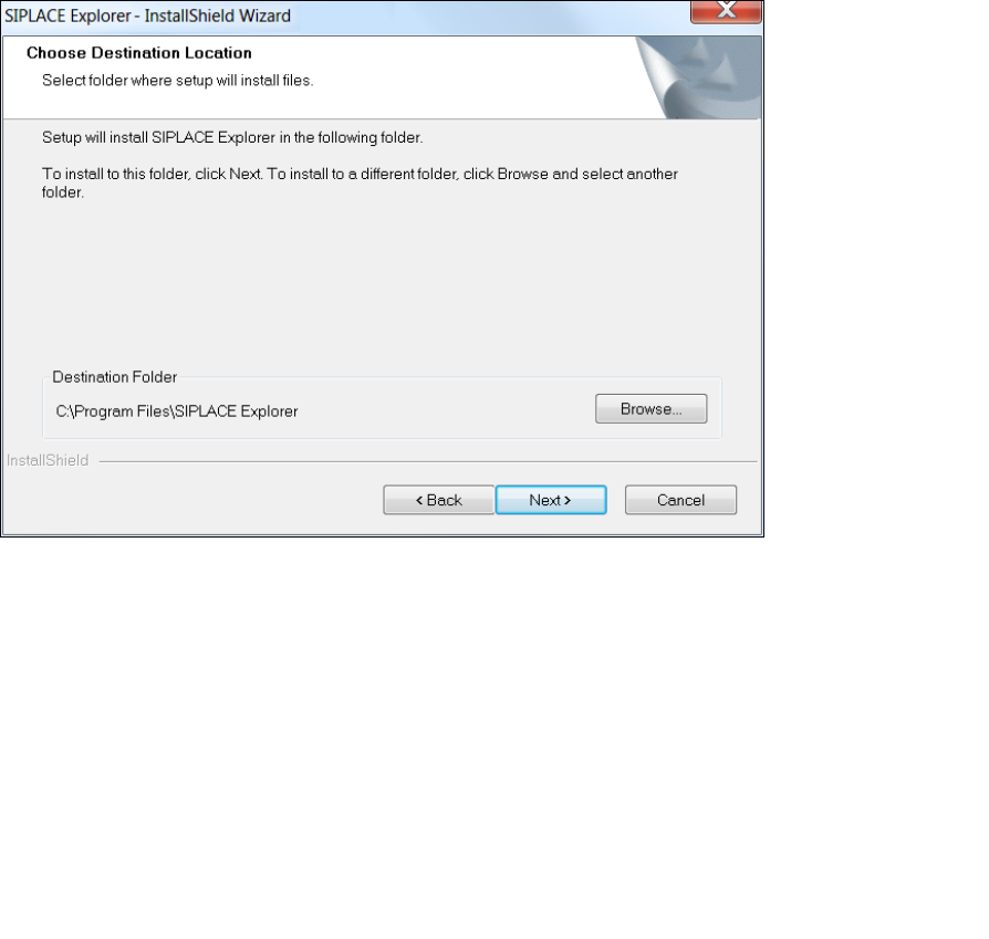 standardmäßig eingestellte Ordner ist C:\Program Files\SIPLACE Explorer.