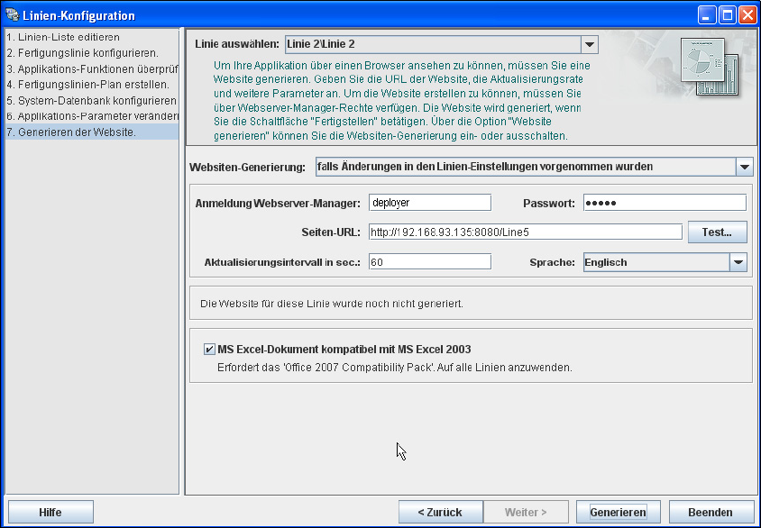 Um Ihre Fertigungslinie im Webbrowser zu überwachen, müssen Sie eine Website generieren.