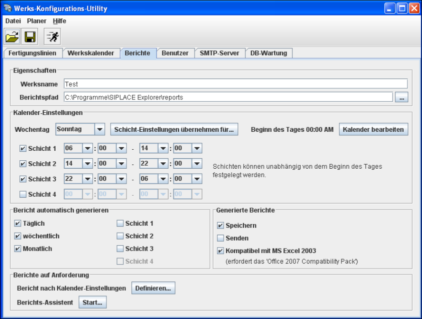 angeben, wie oft die Werks-Berichte generiert werden sollen, wo sie abgelegt werden sollen, usw.4