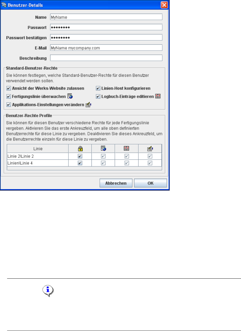 Über das Benutzer-Management können Sie für jede Fertigungslinie die Benutzer mit deren Auf-
