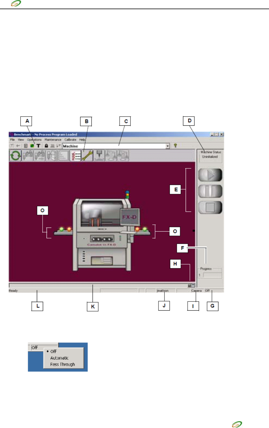 佳力科技 ·要改变轨道模式,右键点击并选择 2 . 13 . 4 点胶模式 ( I ) ·点胶模式也出现在轨道的右下角 ·一共有三种点胶模式 —— DR Y RUN (空跑) —— DISPENSE (点胶) —— CAMERA (相机) ·要改变点胶模式,右键点击并选择 2 . 13 . 5 警告信息显示栏 ( K ) ·这儿会显示所有在生产中出现的错误信息 ·可以选择是显示半屏还是仅显示一条 2 . 13 . 6 操作按钮 ( E …