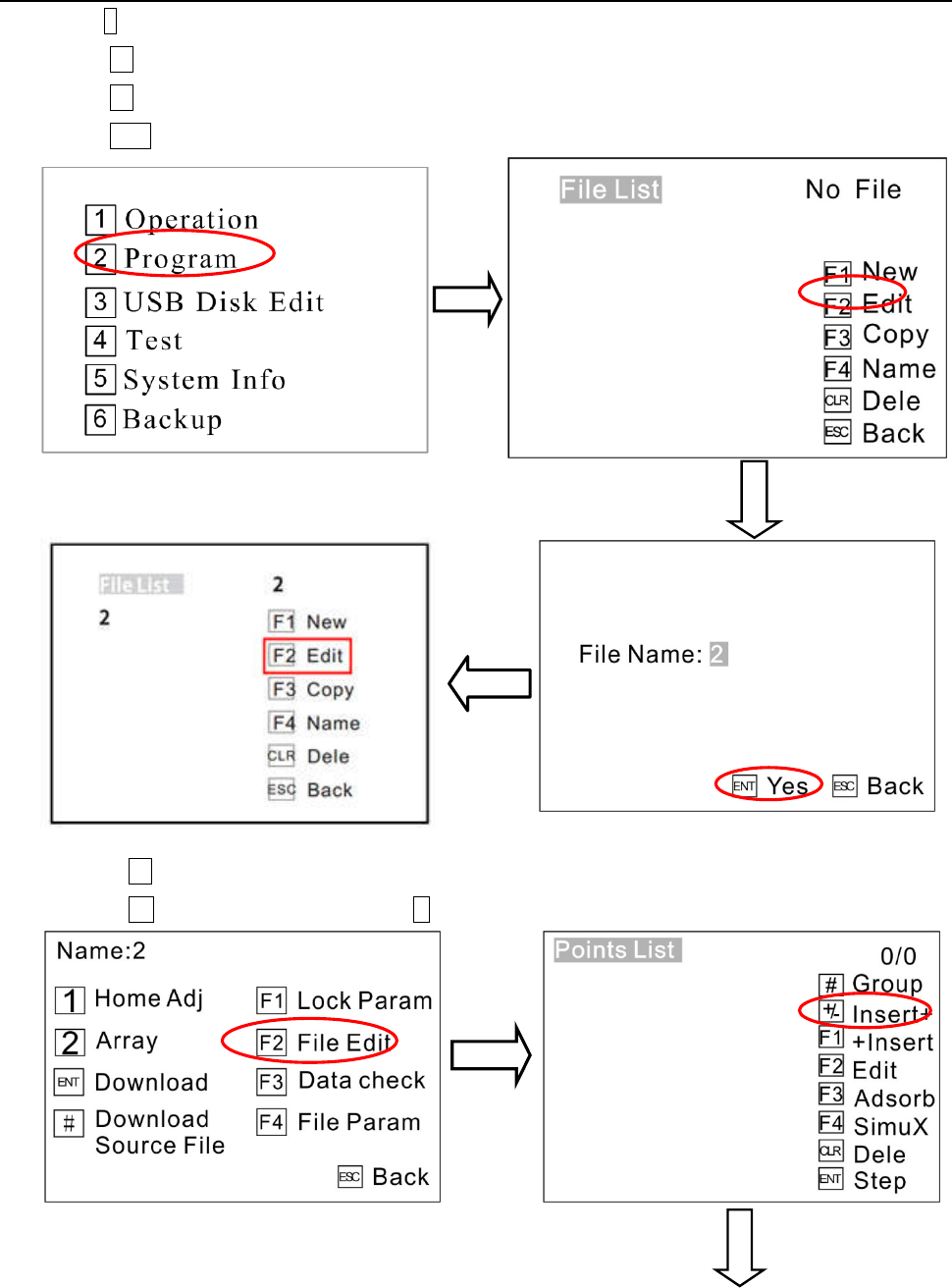 2. Process: please refer to instruction manual of the teaching pendant “File Processing”.