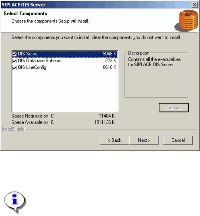 OIS Client, OIS Server, SIS Server Version 7.0 Installationsanleitung Installation manual 3.2.2 Installing OIS Server ¾ Select the components you want to install. ¾ Continue by clicking the Next> button. Note: It is p…
