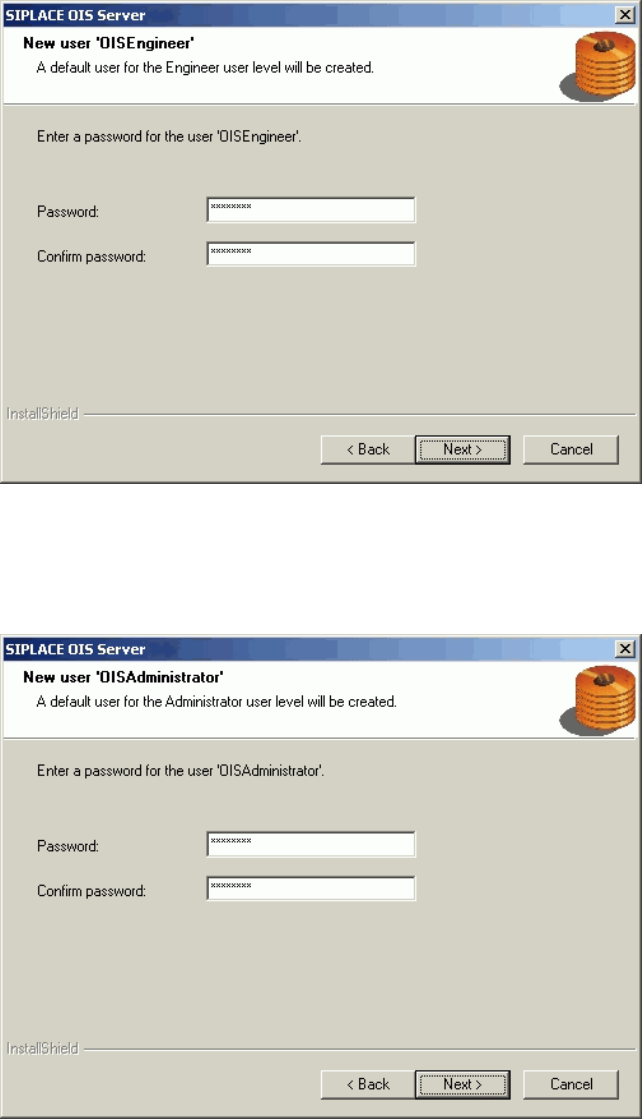 The next two dialog boxes allow you to assign a password to each user.