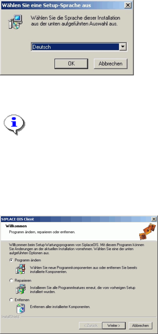Das Setup-Programm erkennt selbständig die Art der Installation.
