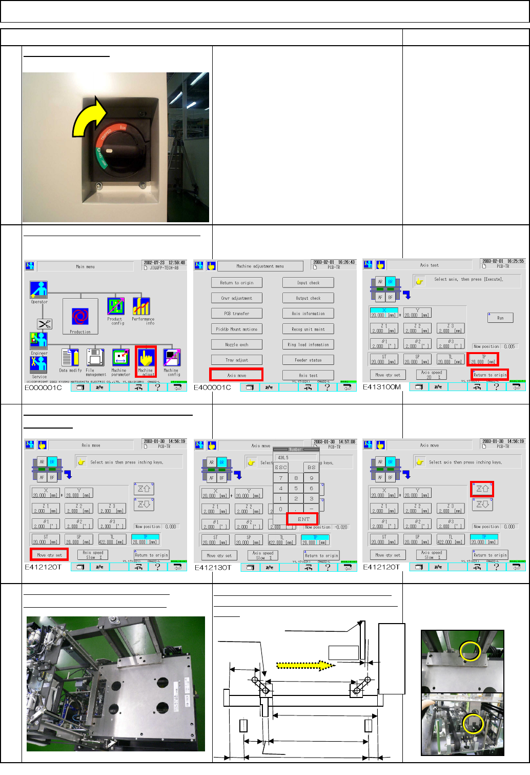 position. Move the axis with a 0.1-mm pitch.