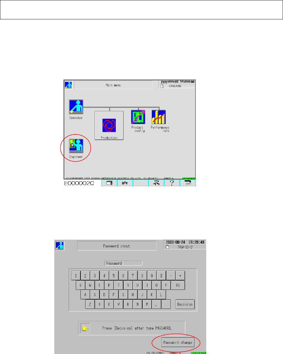 Press [Password change] on the “Password input” screen. Type the desired password.