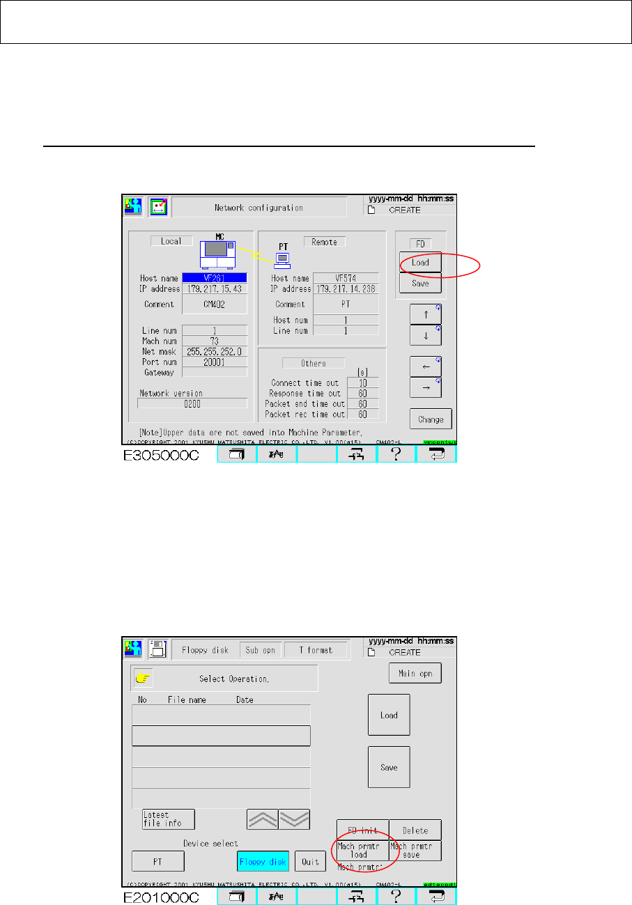 into the CM602-L floppy disk drive. Select [Machine parameter], and [Network]. Display
