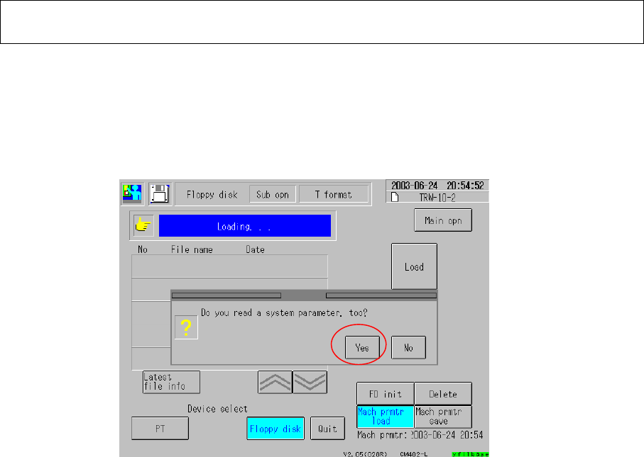 parameter, too?” is displayed. Be sure to select [Yes] so that the system parameters are