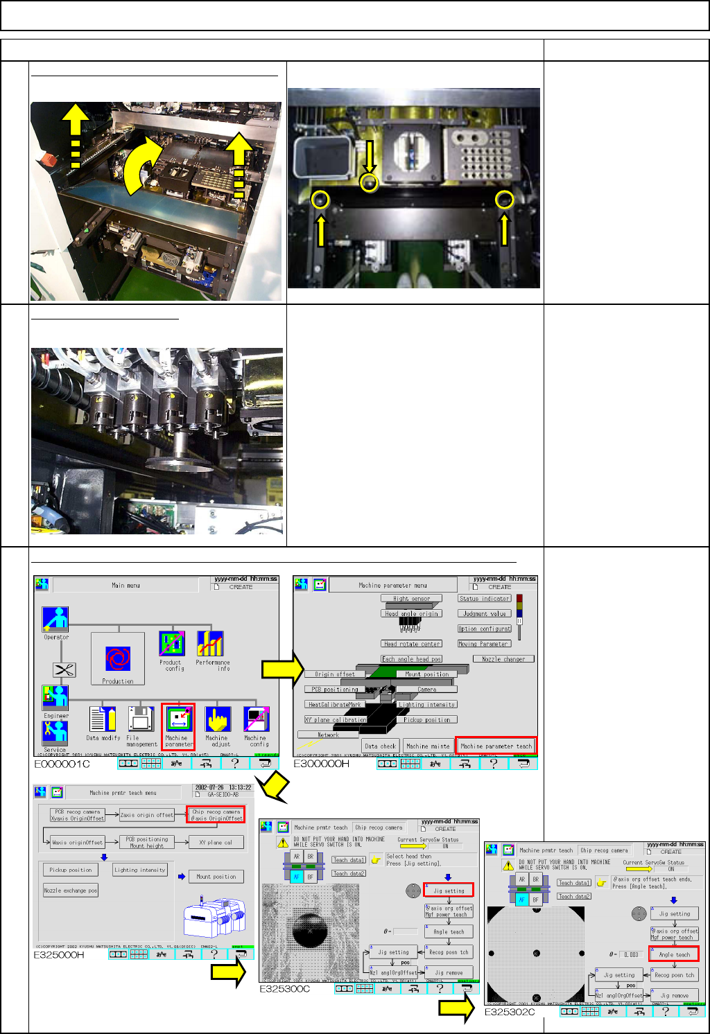This section describes the procedures for positioning the chip recognition camera in the theta direction.