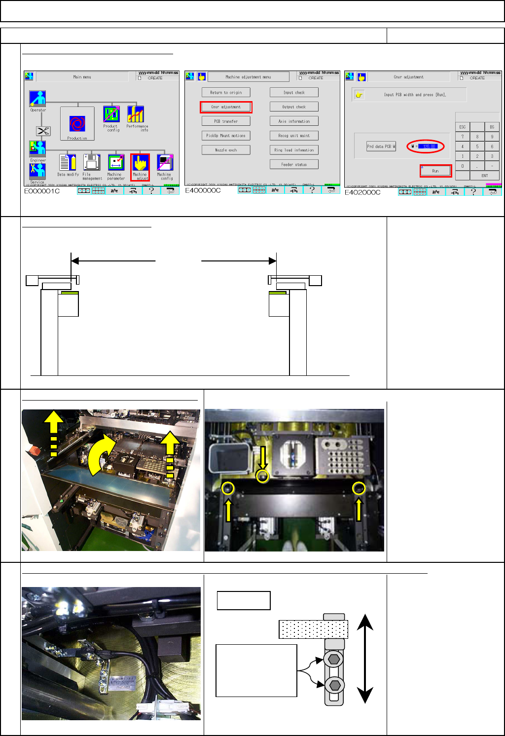 Maintenance Adjustment Main Body Beam Remarks Item Once the sensor position is adjusted, enter 50 into the [W] box and press [Run]. Measure the width. It should be 50. 5 mm. 50.5 mm+0 mm to 0.2mm (50.5 mm to 50.7 mm) Put…