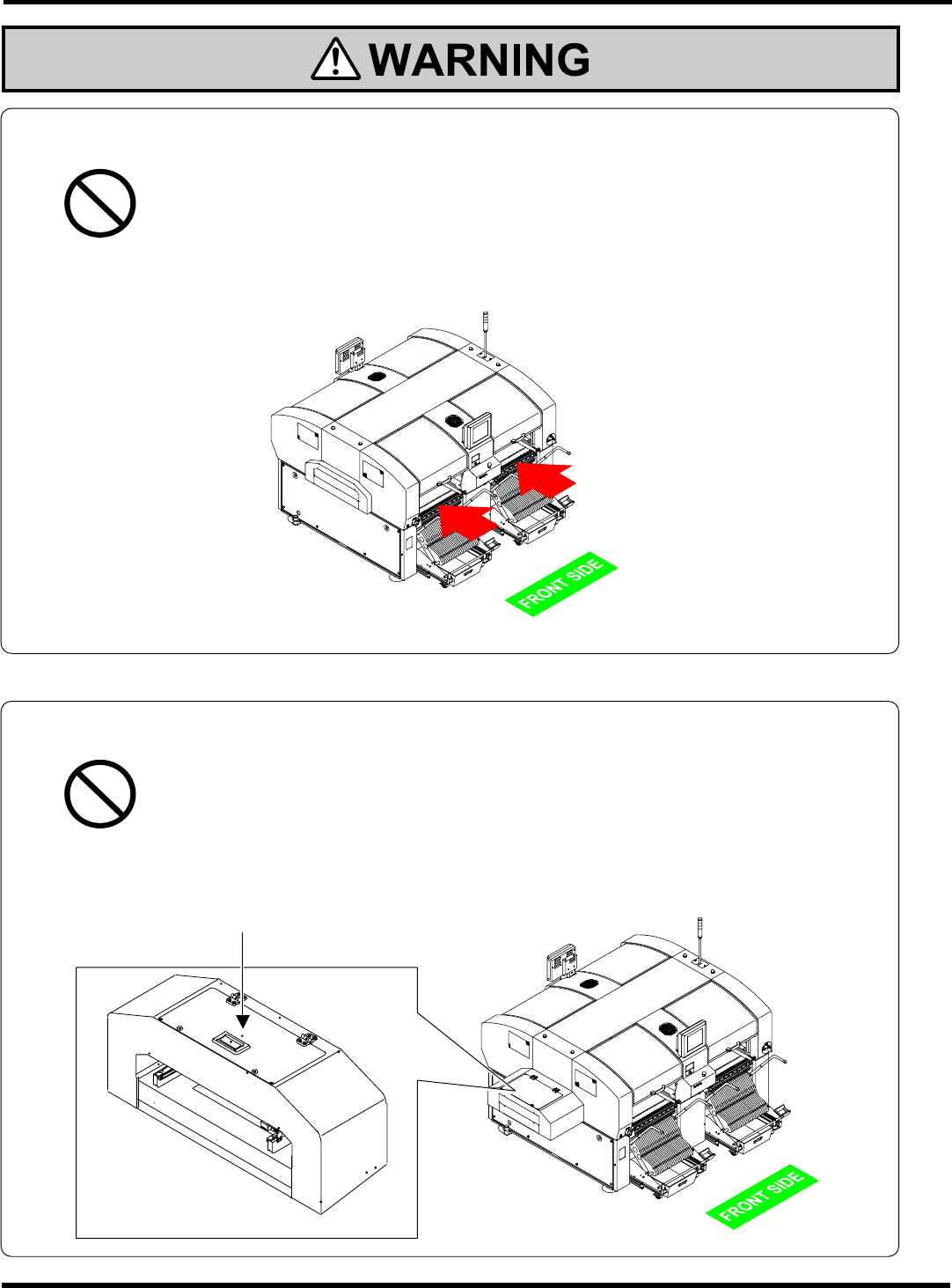 We recommend installing all feeders so that you will not accidentally put your hands into the machine.