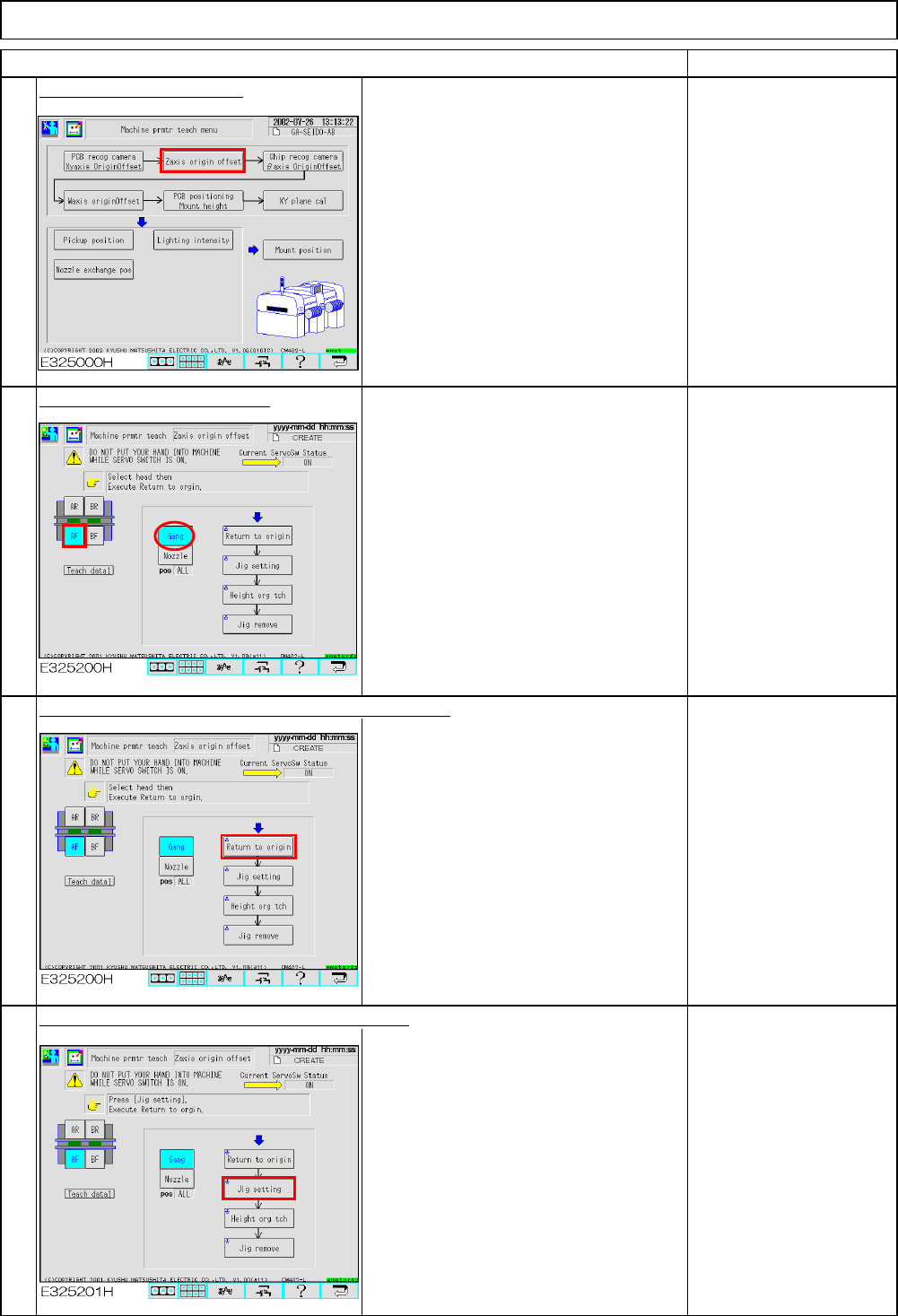 Maintenance Adjustment Light Transfer-Head Assembly (8 nozzles) Remarks Press [Zaxis origin offset]. When using eight nozzles, follow Steps 1 to 8. Select the stage to be taught. When selecting the stage, check that [Gan…