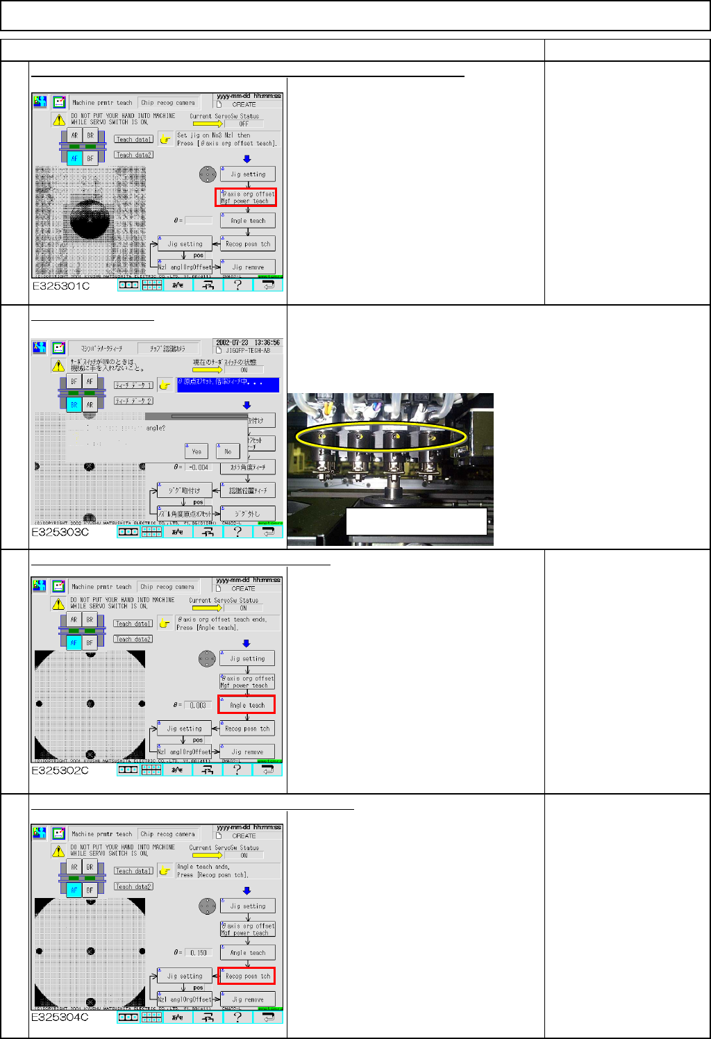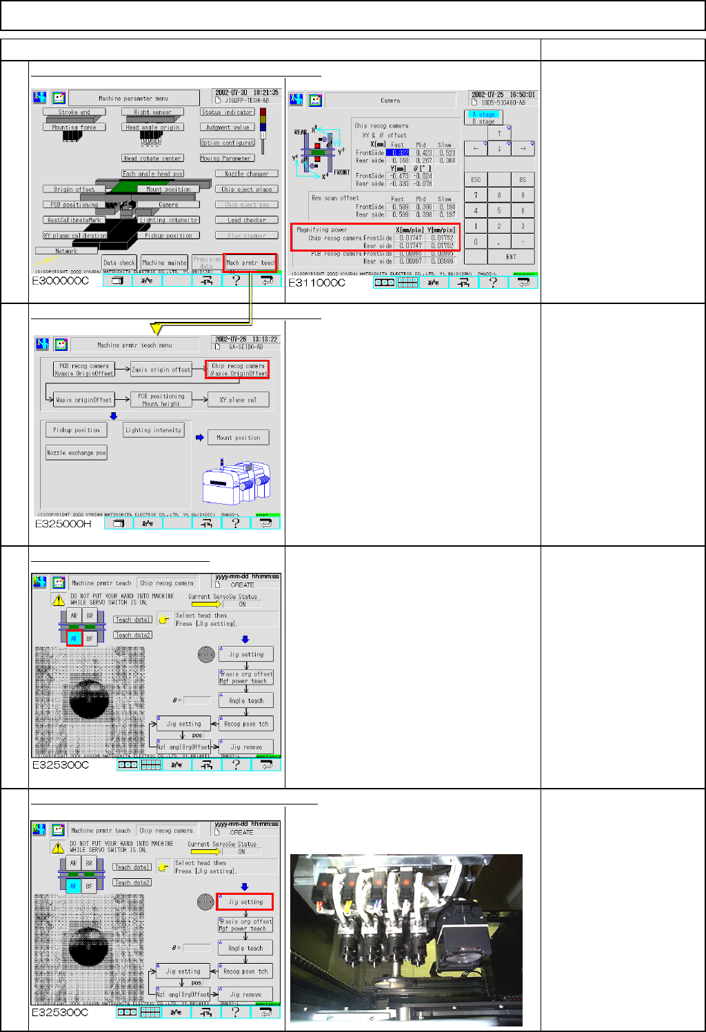Maintenance Adjustment Light Transfer-Head Assembly (8 nozzles) Remarks Press [Chip recog camera θ axis OriginOffset]. If "0" is displayed in the "Magnifying power" boxes shown at left, enter a tentat…