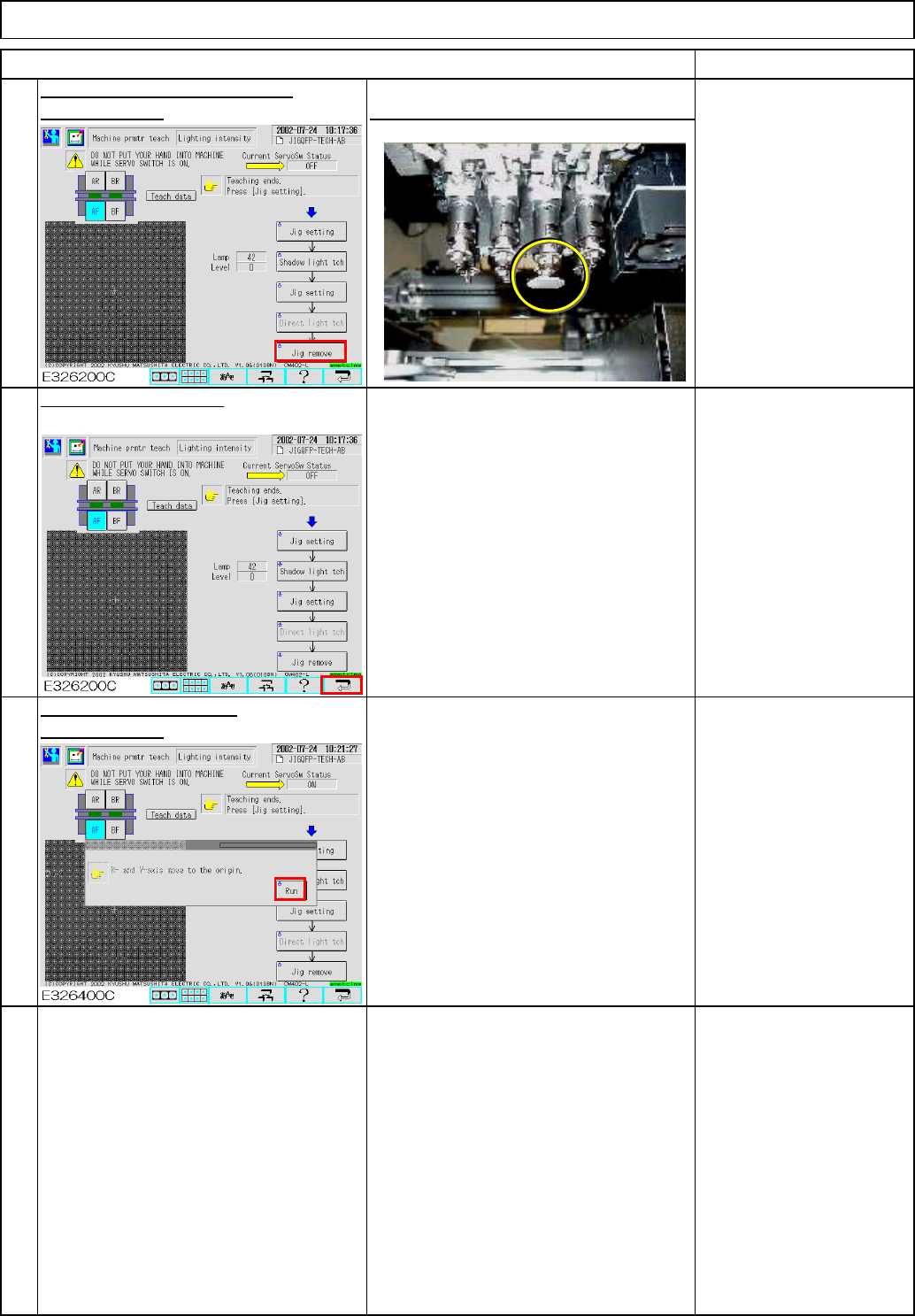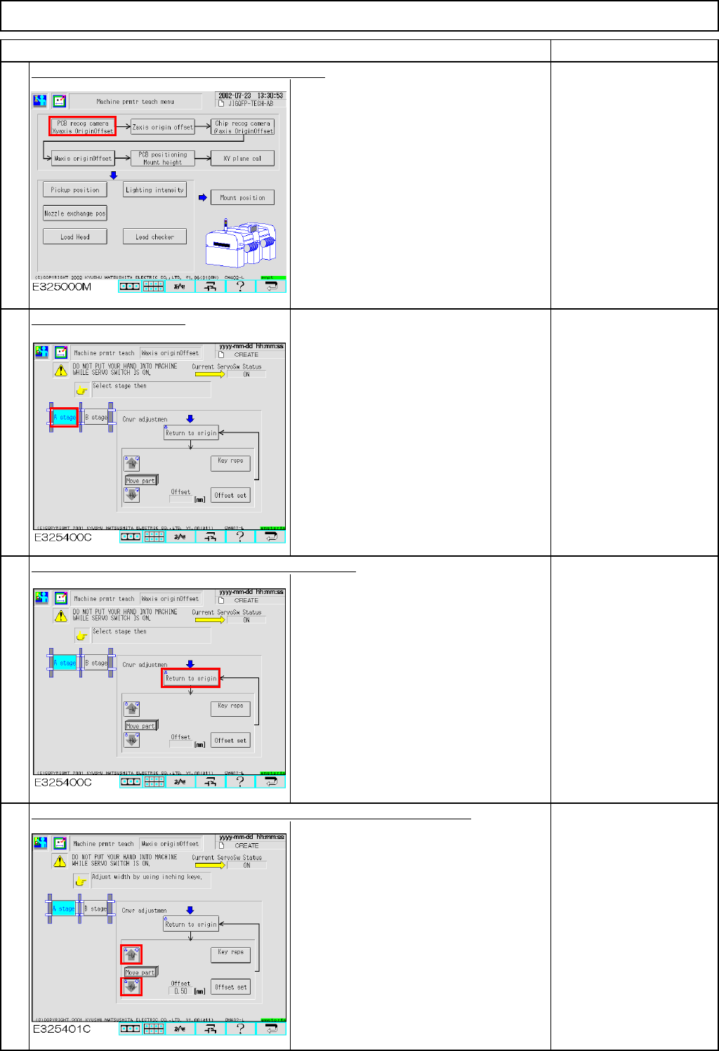 Maintenance Adjustment Light Transfer-Head Assembly (3 nozzles) Tools Ruler 500 mm Jig None 4-3-1 Conveyor-Width-Adjusting Axis Origin Offset This section describes the procedures for determining the offset for the origi…