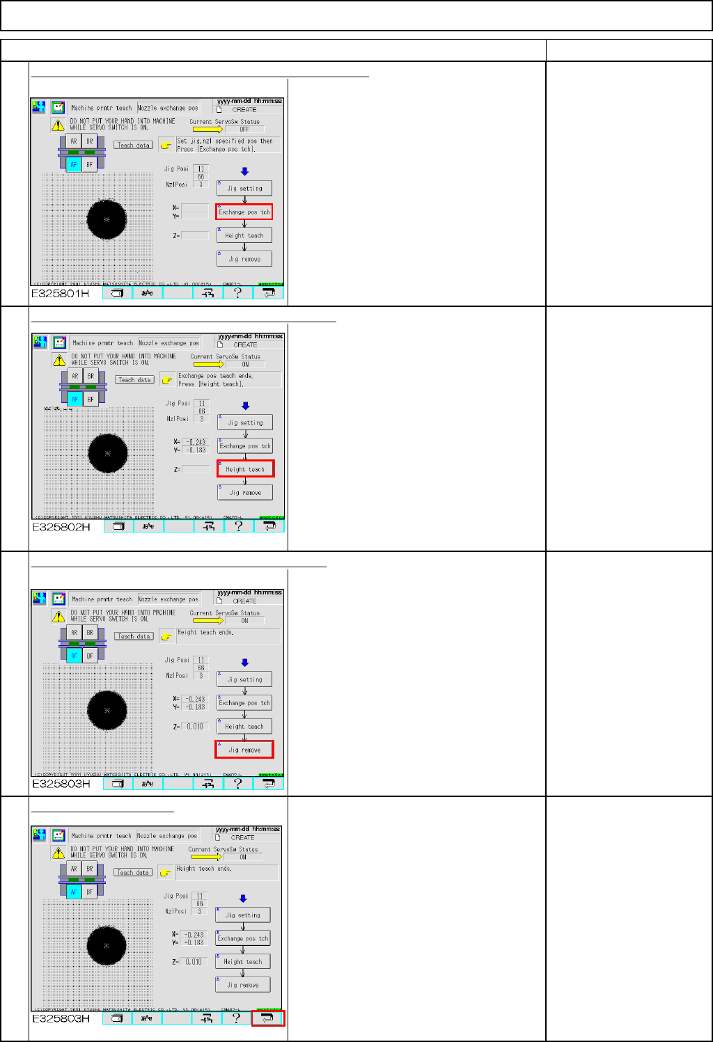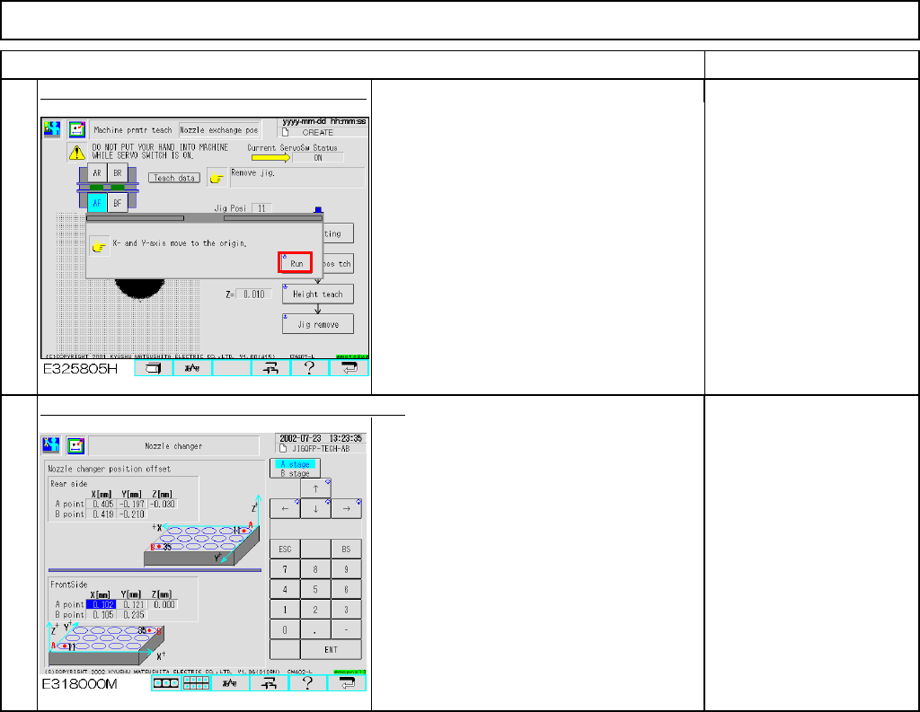 Maintenance Adjustment Light Transfer-Head Assembly (3 nozzles) Remarks Item Press [Unlock] and [Exchange pos tch] simultaneously. The jigs in the nozzle changer are recognized by the head camera automatically. Press [Un…