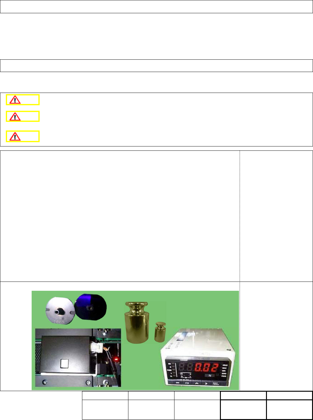 Maintenance Adjustment Light Transfer-Head Assembly (3 nozzles) This section describes the procedures for determining offsets for the load applied to the load head. ・ Tools None ・ Jig Nozzle 1003 Load Measuring Jig 作業時間 …