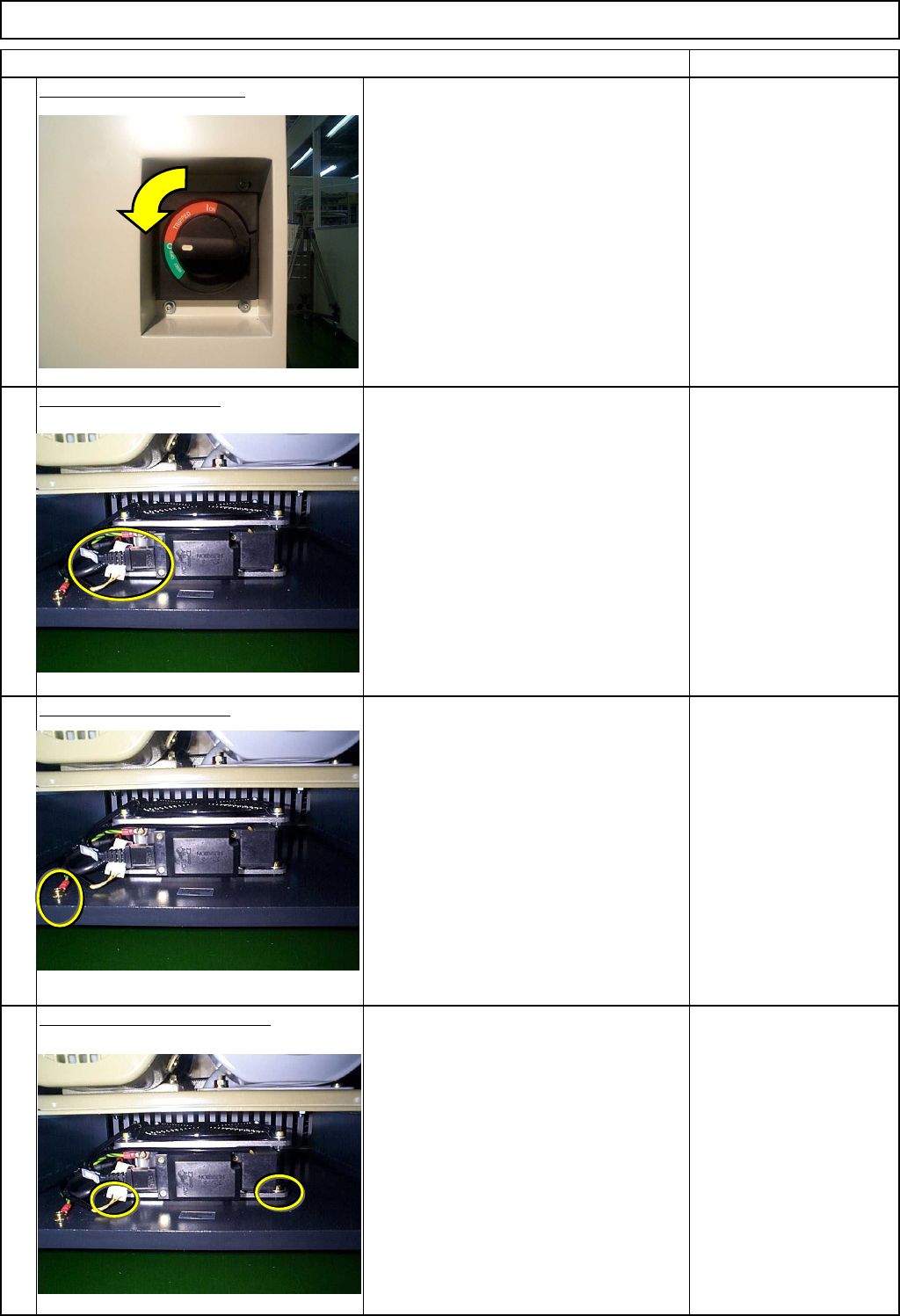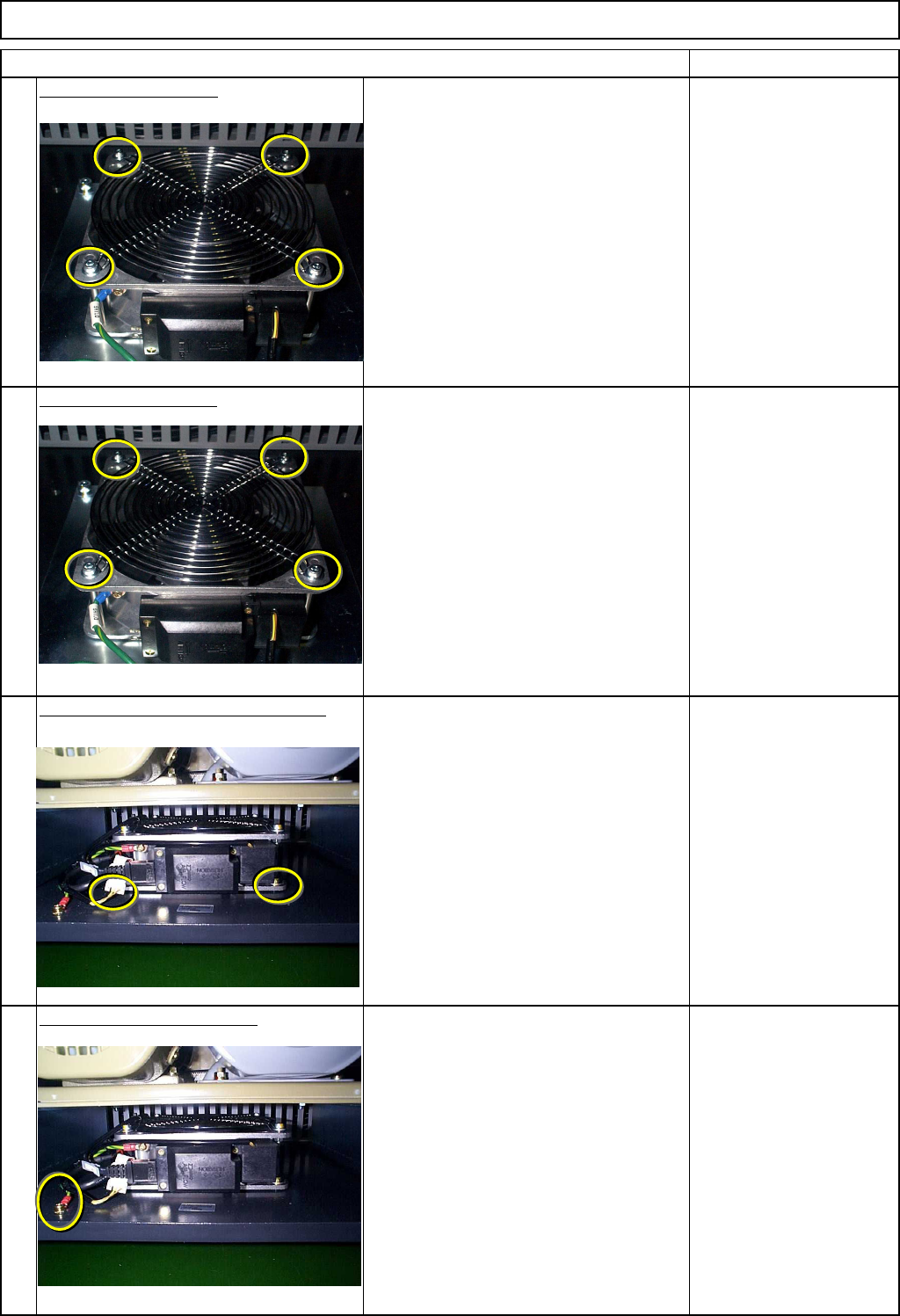 Machinery Part Replacement Main Body Remarks Item Remove the fan guard. Allen key 4 mm Bolt M5 4 pcs. Replace the fan guard. Fit the fan onto the main body frame. Allen key 6 mm Bolt M8 2 pcs. Put the earth cable back on…