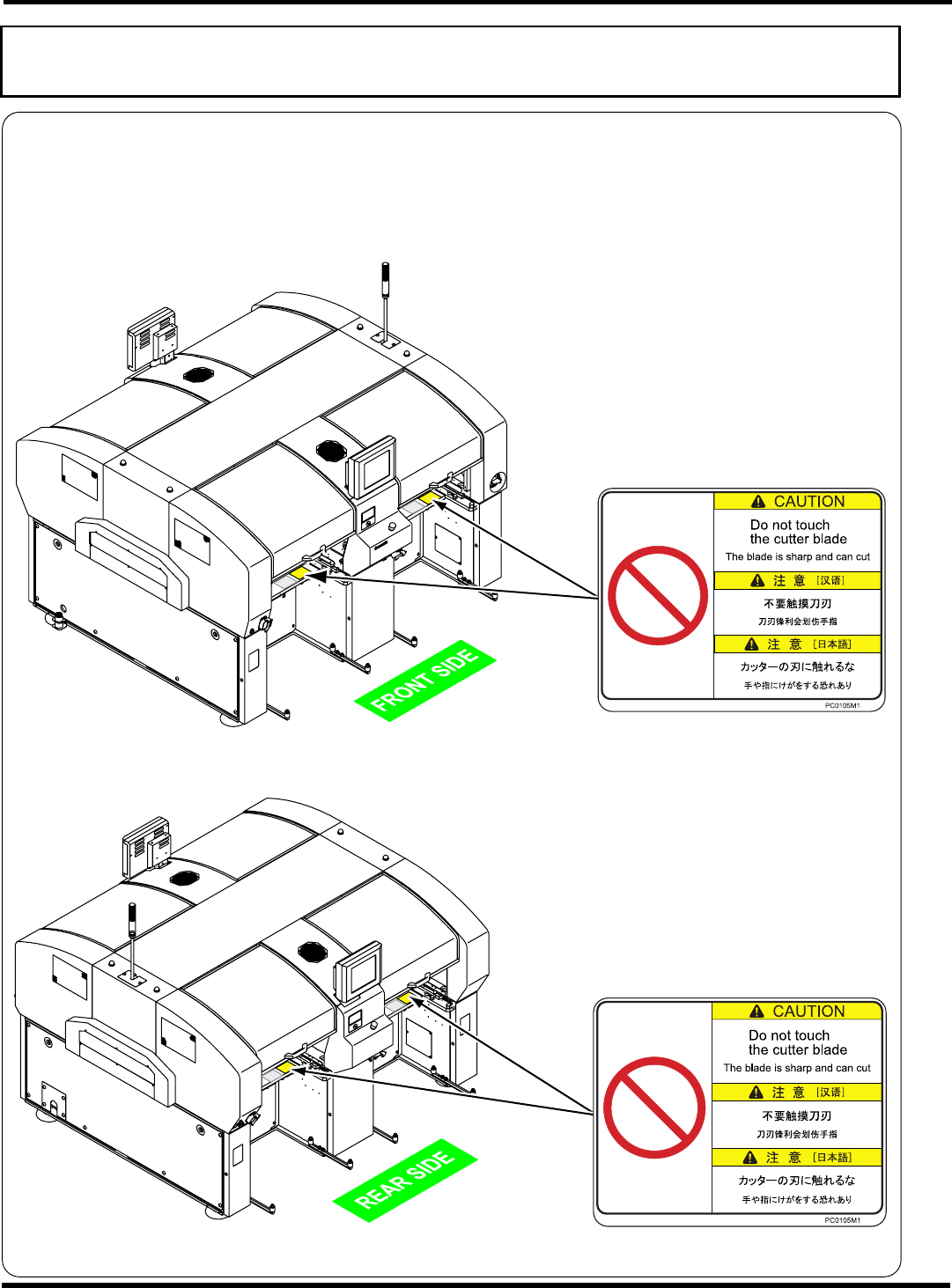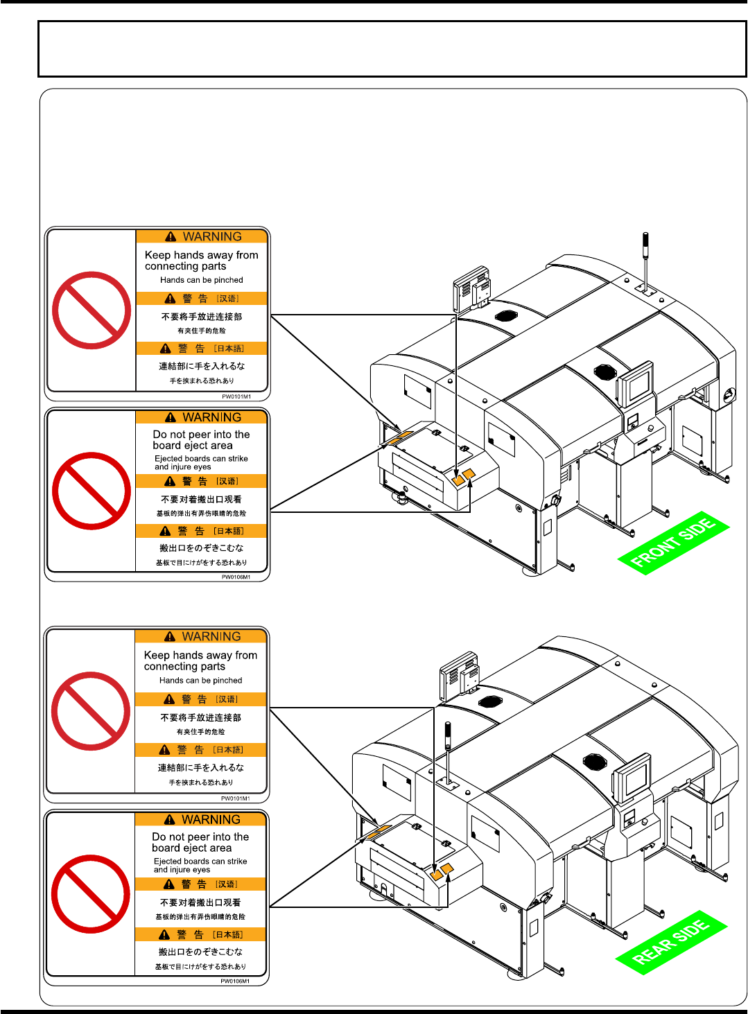 Warning label locations on the front side