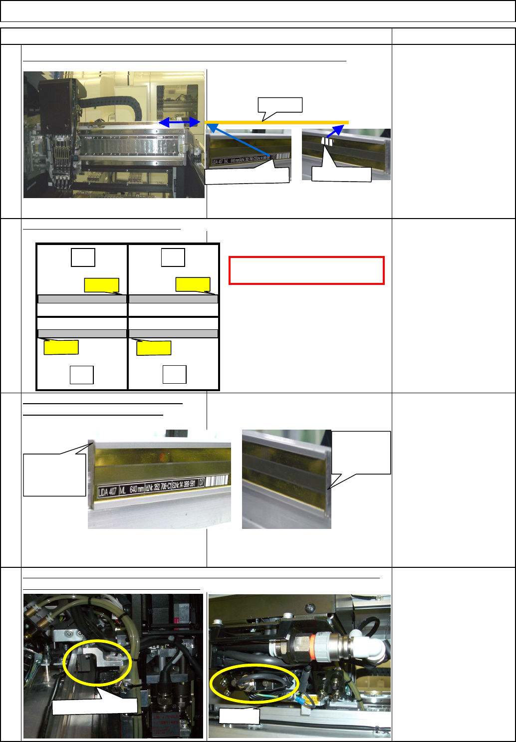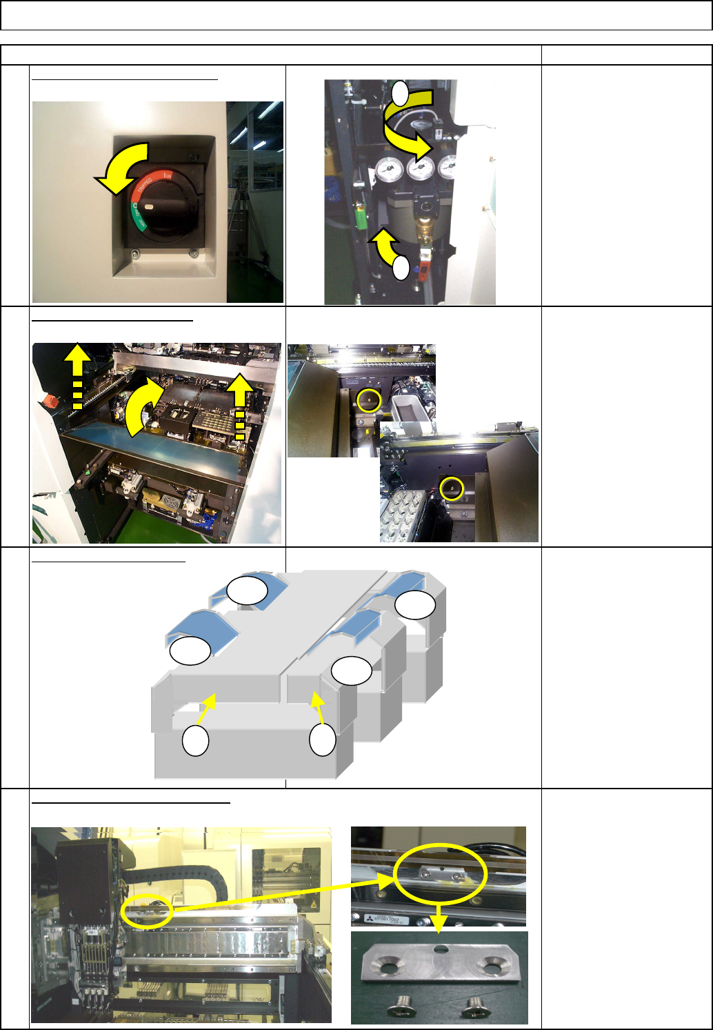 Turn off the power and the air. Main Body Remove the side covers. Remove the scale holding plate. Machine Part Replacement 2 1 Item Remove the feeder cover. Remarks Allen key 3 mm Screw M4 (Special) x 2 Phillips screwdri…