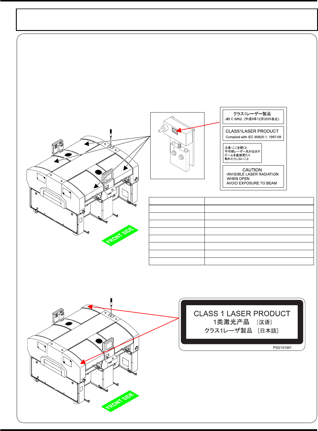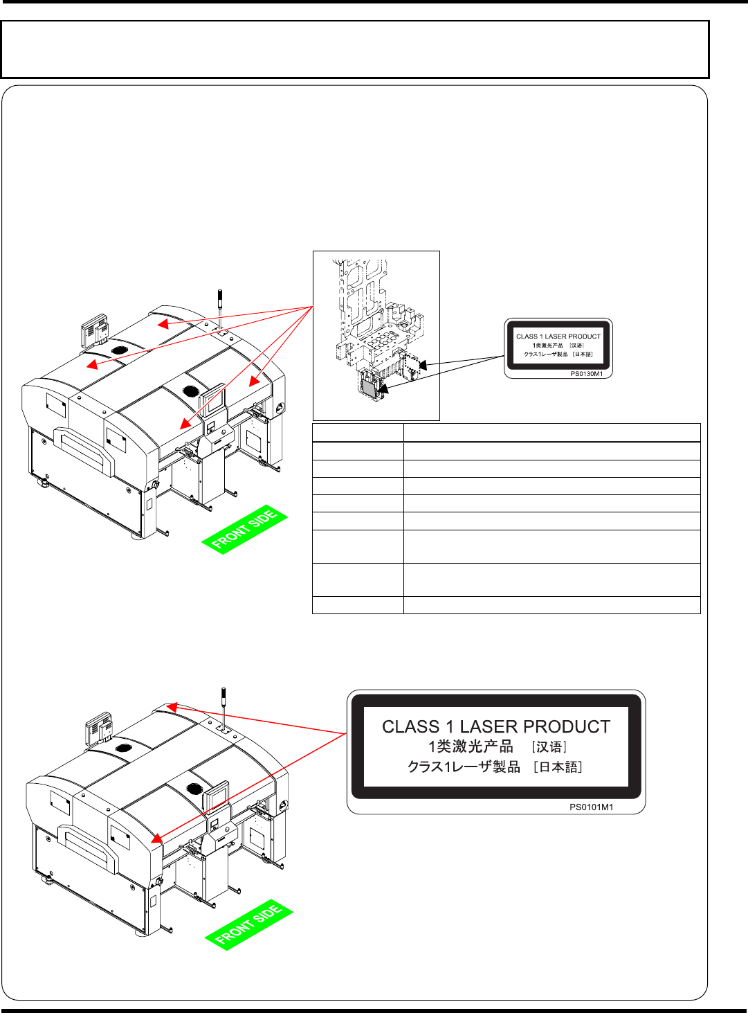 Laser class label on the machine