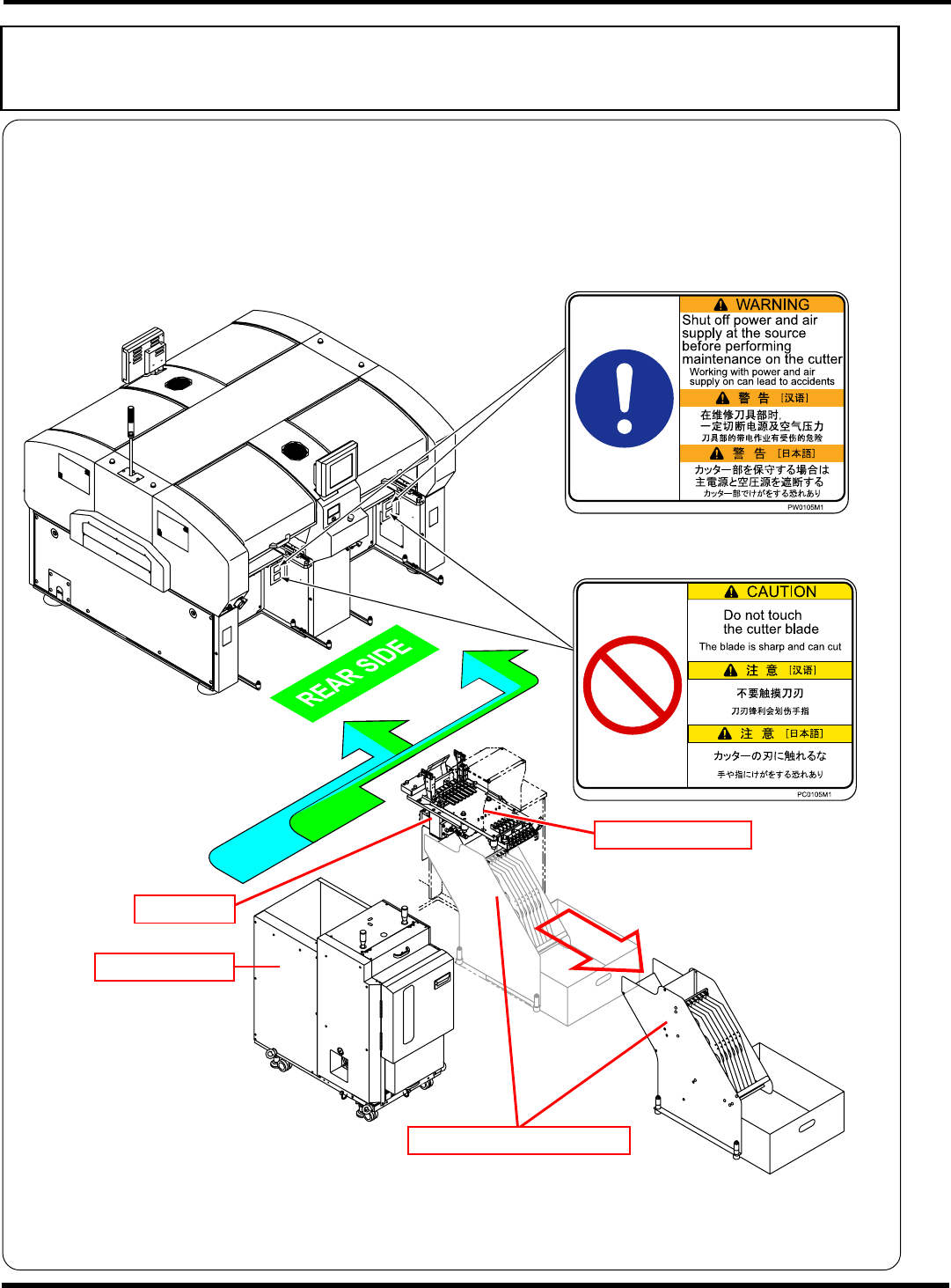 and put your hands in, you may touch the cutter blade directly. Although the warning/caution labels are