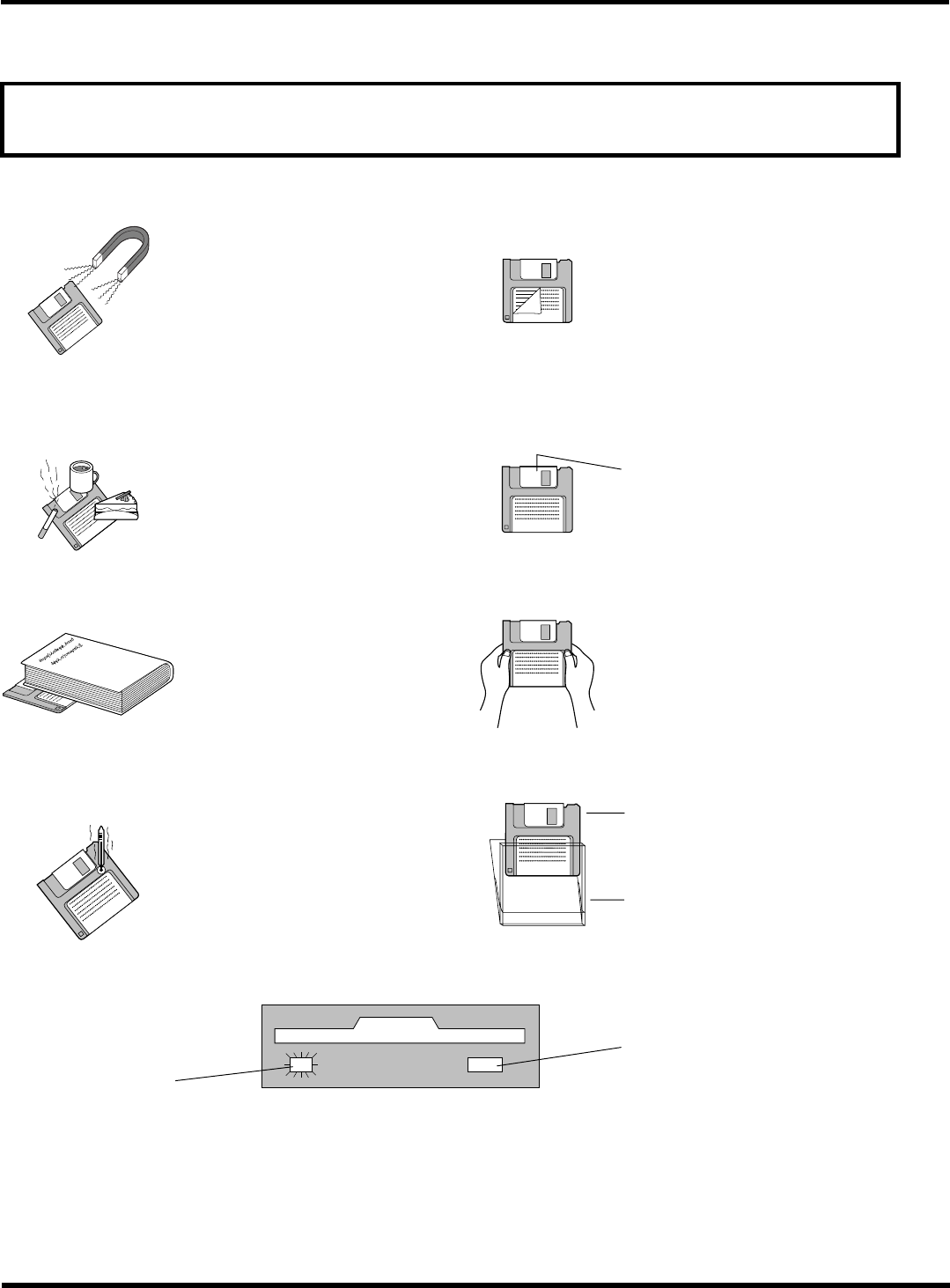 CM602- L Se r vi c e Manual 48 3. Handli ng NOTICE In handling floppy disks, be sure to obser ve the fo l low ing item s. Keep away m agnets. Av oid attac hing a new label ov er an old one. Keep the di sk aw ay from …