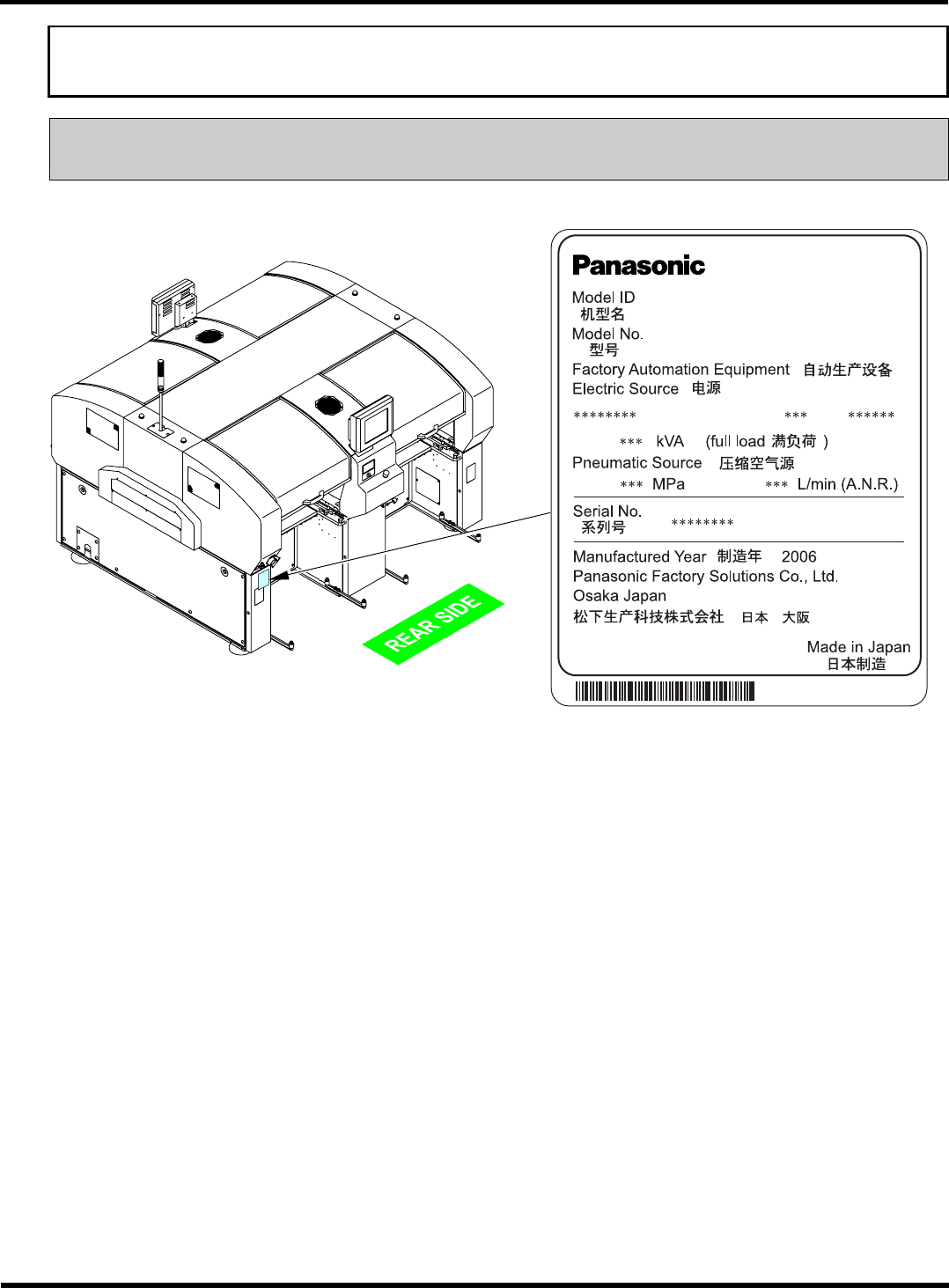The serial plate indicating the nickname (Model ID) and production number (Serial No.) of the machine is