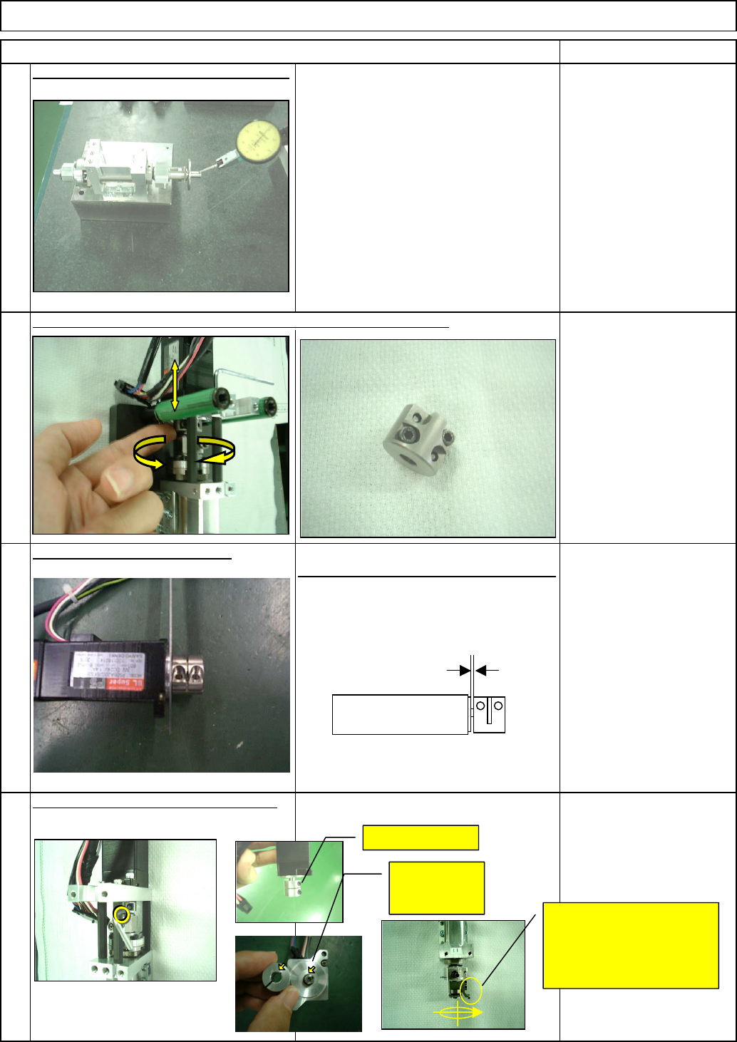 Tool/Spec/Installation Specifications: 0.5 mm Feeler gauge Remarks Item 14 Align the center with the theta alignment jig. Tighten the coupling. See Section 5-4-1. Allen key 2 mm Allen key 2.5 mm Screw M2.6 2 pcs. Screw M…