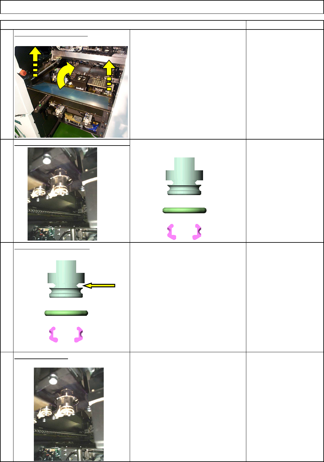 This section describes the procedures for replacing the clamp hook. Phillips screwdriver #2 Barrierta IEL None 5-4-4 Clamp Hook Replacement Machinery Part Replacement Light Transfer-Head Assembly (3-nozzle type) • Tools …