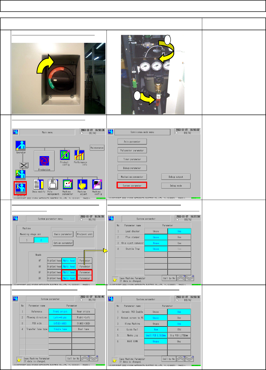 Change the system parameters. Change the setup of the desired stag e Change the system parameters to "Multi head." Check the basic parameters. Check the optional parameters. according to the machine specificati…