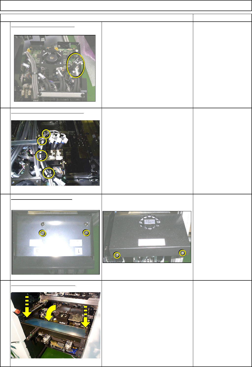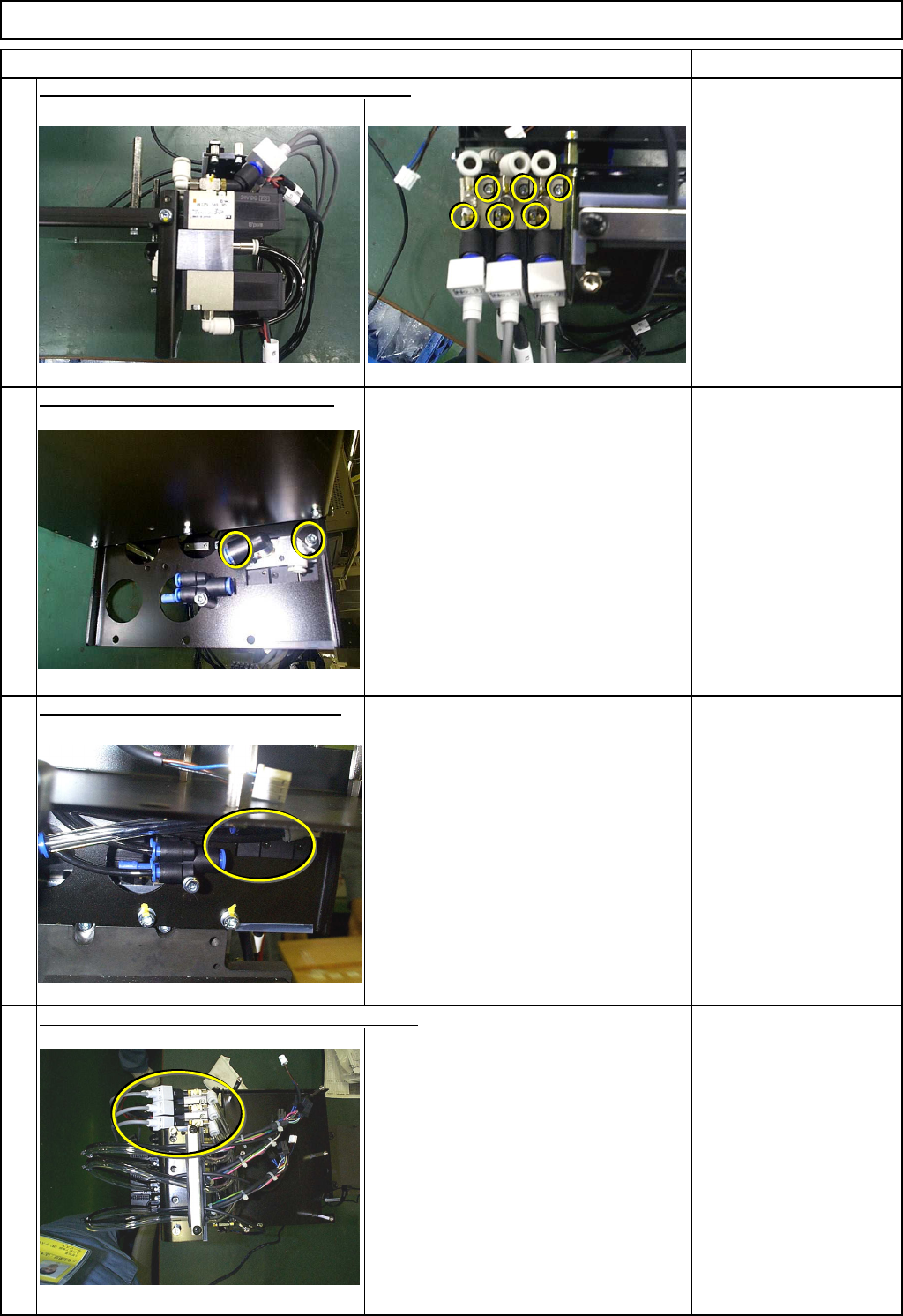 Machinery Part Replacement Remarks Item Z Unit (3-nozzle type) Remove a set of manifolds. Replace the valves. One set consists of three valves. Allen key 2.5 mm Screw M3 6 pcs. Put a new set of manifolds in position. All…