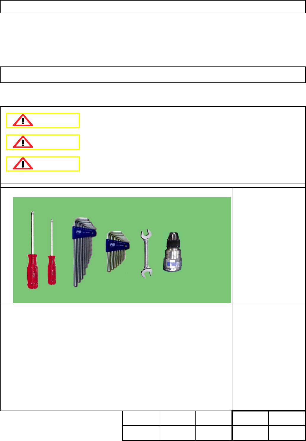 Tools and Specifications